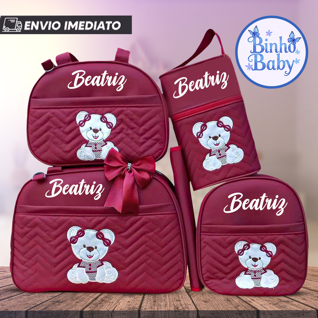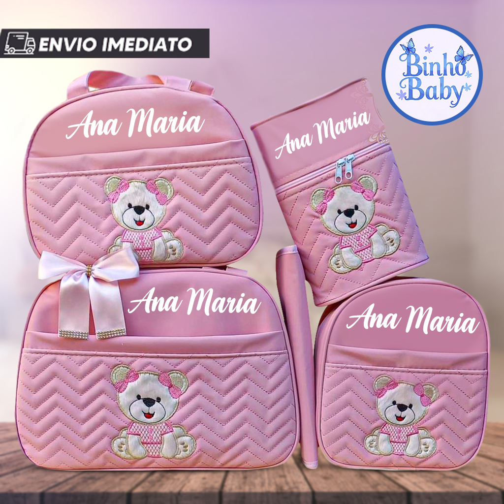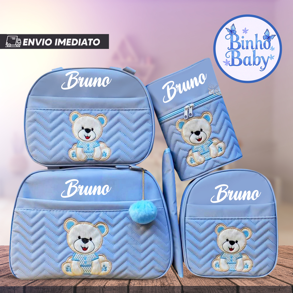 Bolsa Maternidade Urso Sentado Nome personalizado - Kit 05 de Peças