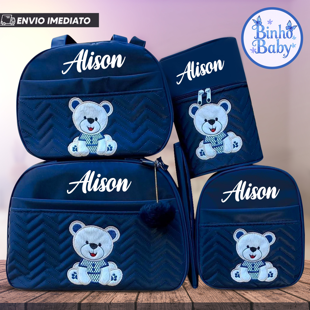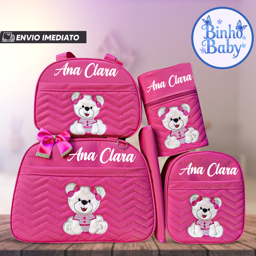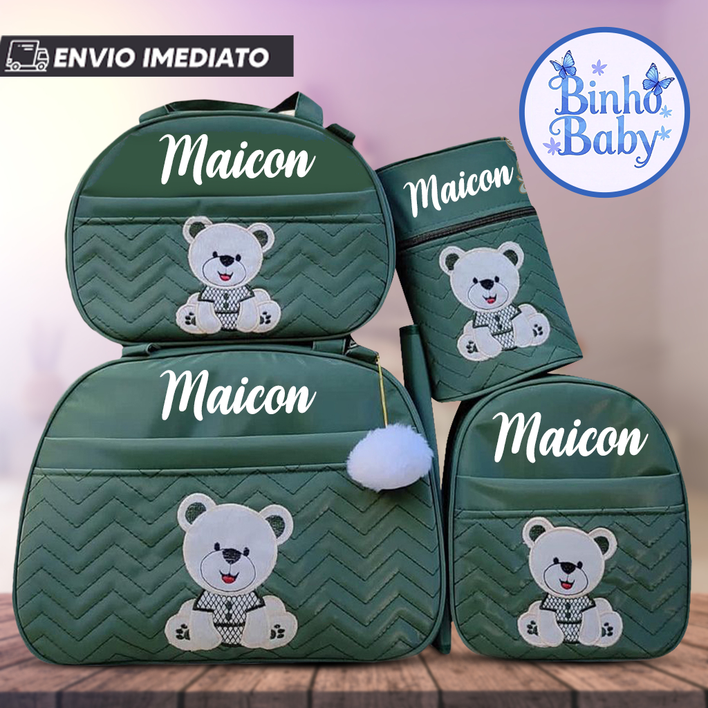 Bolsa Maternidade Urso Sentado Nome personalizado - Kit 05 de Peças
