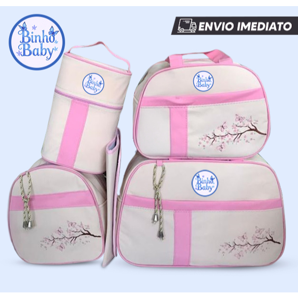 Kit de Bolsa Maternidade Bege com Fita - Menino e Menina