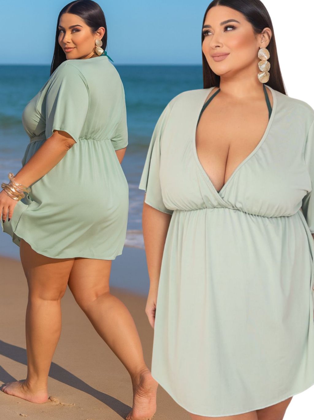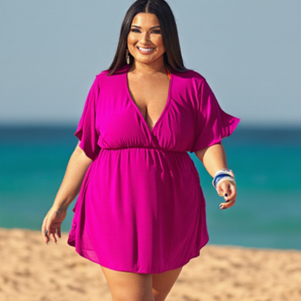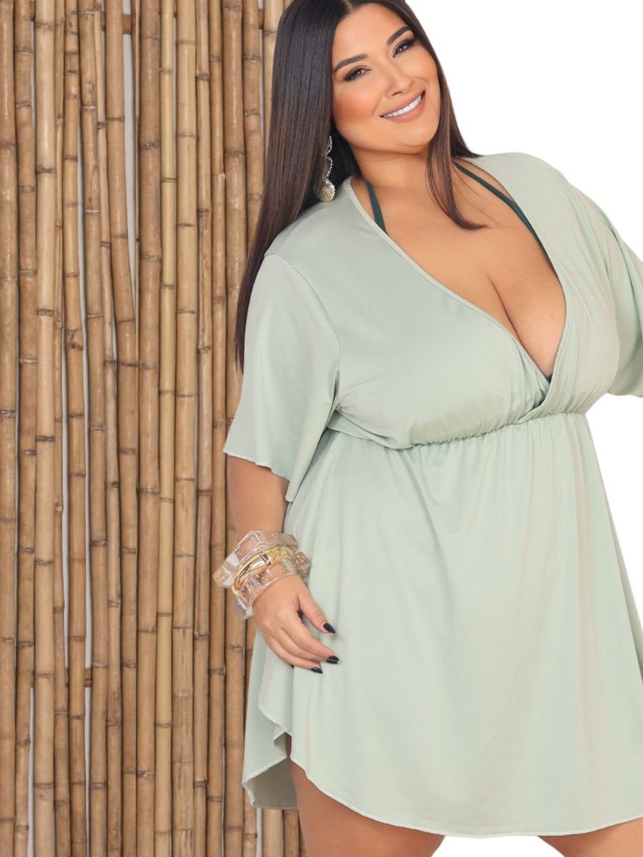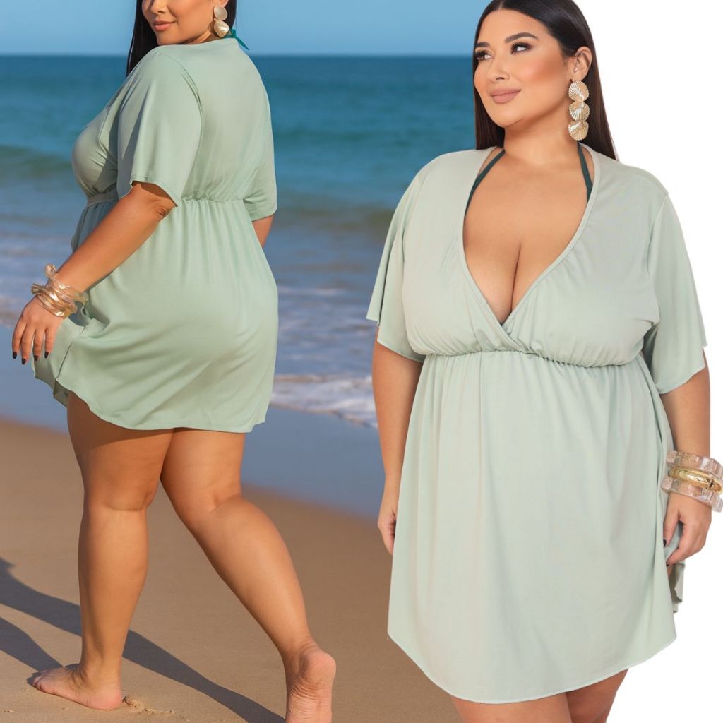 Saida De Praia Plus Size Vestido Soltinho Piscina Larguinho Kimono Curve Elástico na Cintura Moda Verão Luxo GG