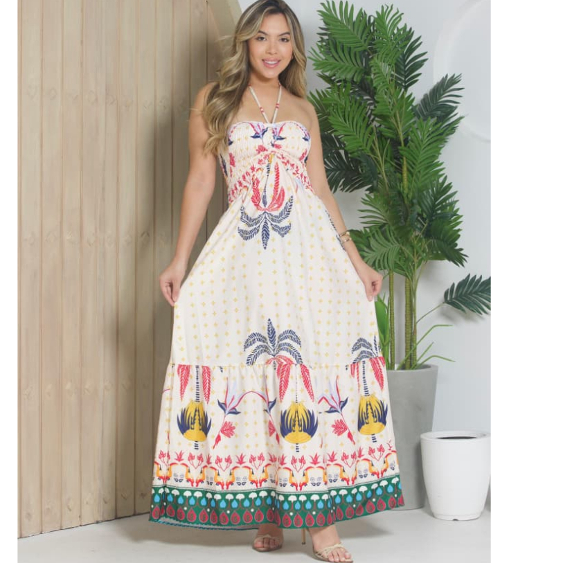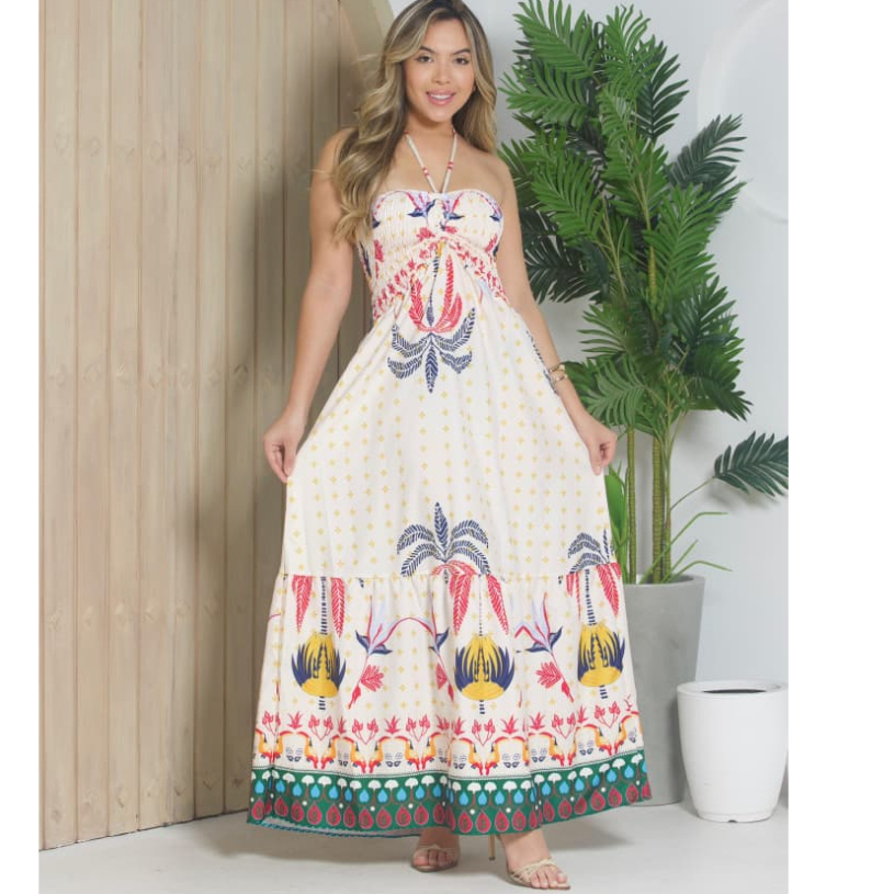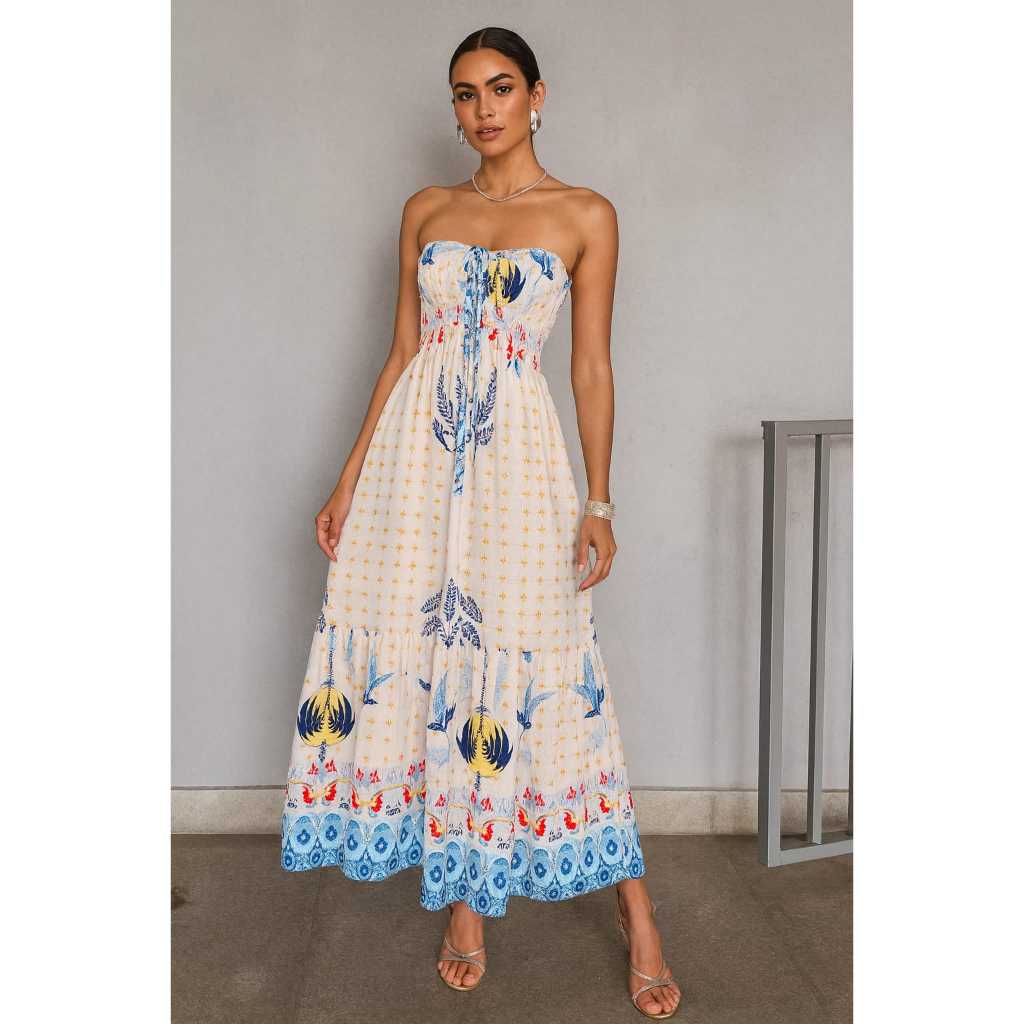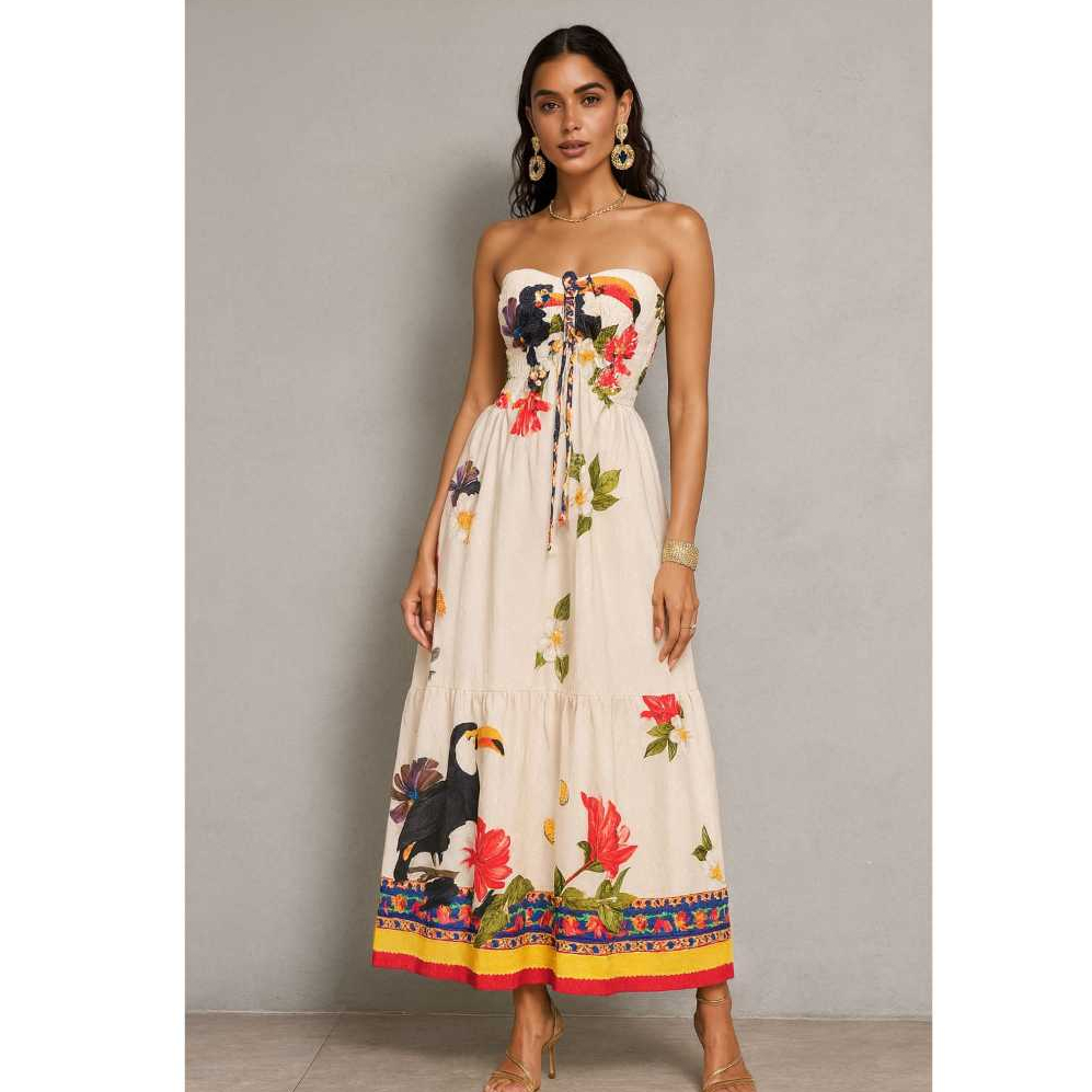 Vestido Feminino Longo Tomara que Caia Tropical Casual Festa