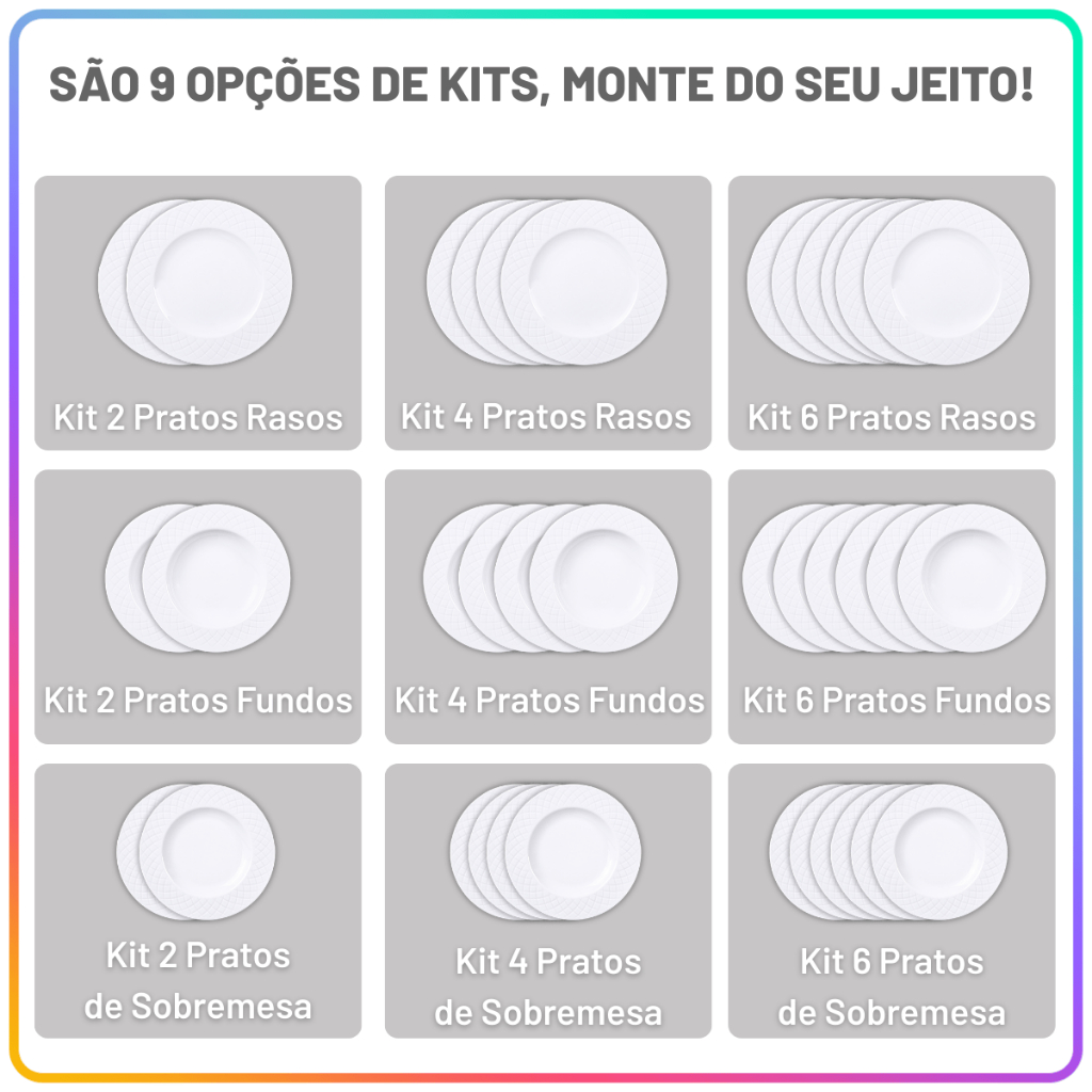 Jogo de Pratos Jantar Ingrid Tramontina Porcelana Conjunto de Pratos Raso, Fundo e Sobremesa Kits