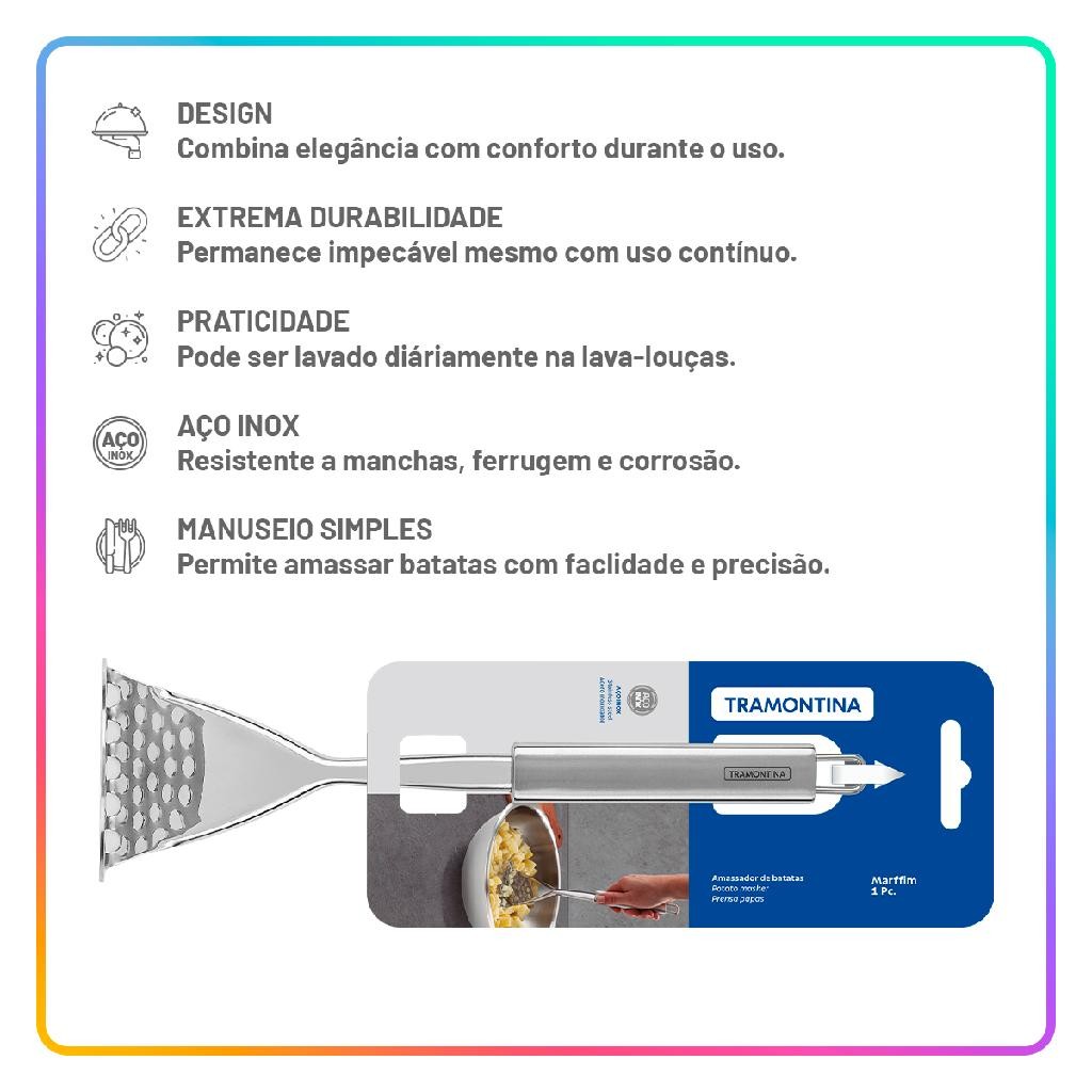 Amassador de Batatas Aço Inox Tramontina Marffim Utensílio Cozinha Resistente a Lava-Louças