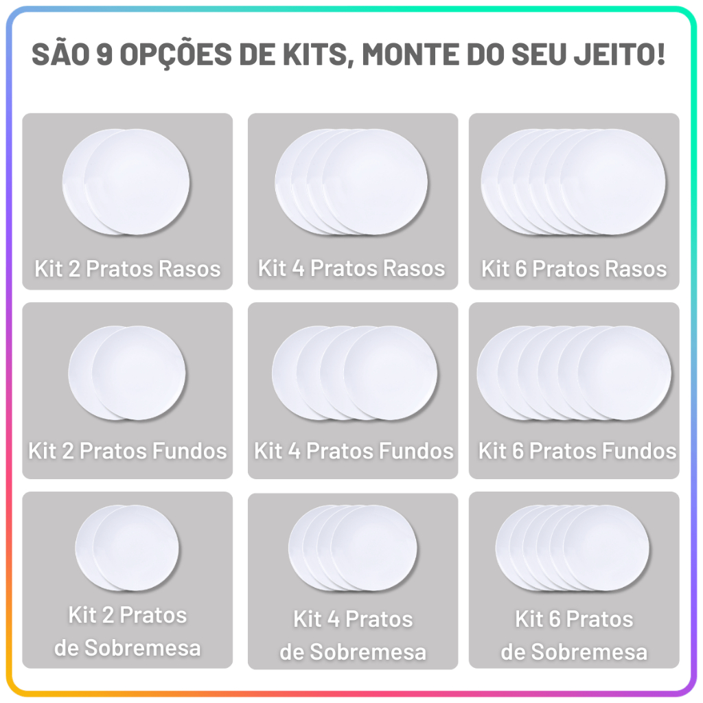 Jogo de Pratos Jantar Leonora Tramontina Porcelana Conjunto de Pratos Raso, Fundo e Sobremesa Kits