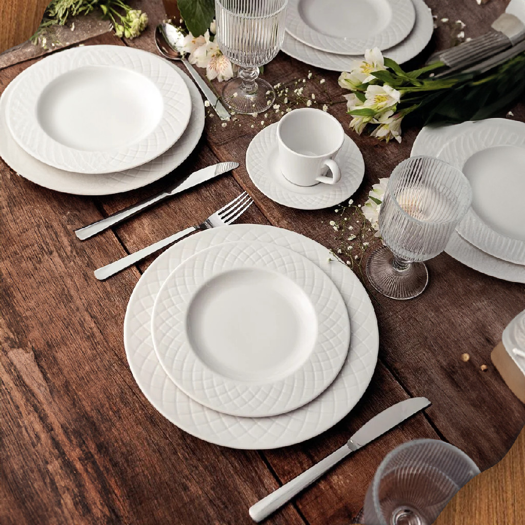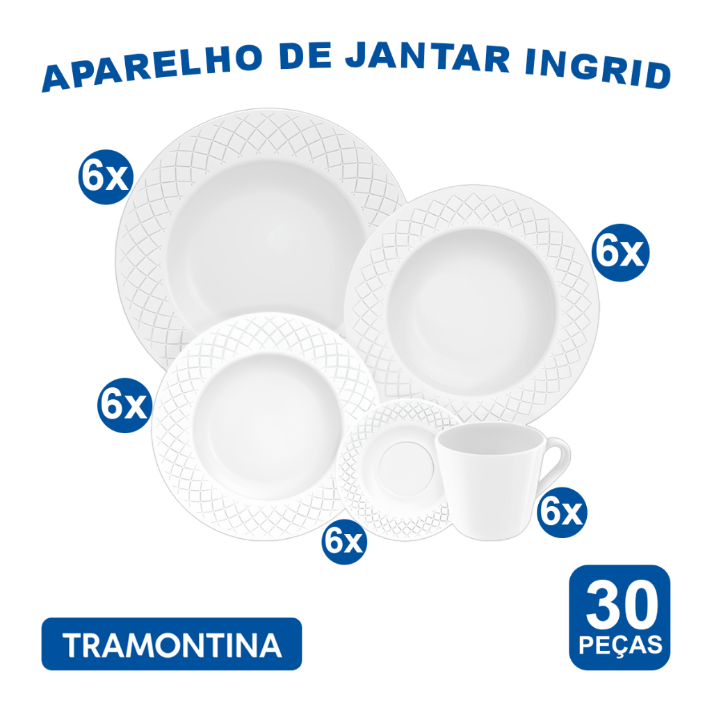 Jogo de Pratos Jantar Ingrid Tramontina Porcelana Conjunto de Pratos Raso, Fundo e Sobremesa Kits