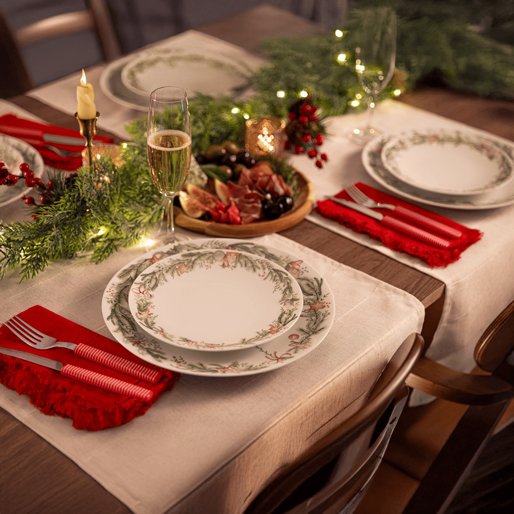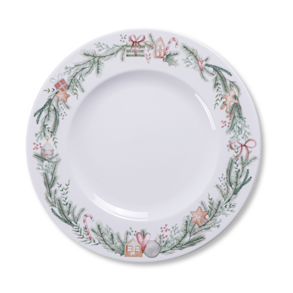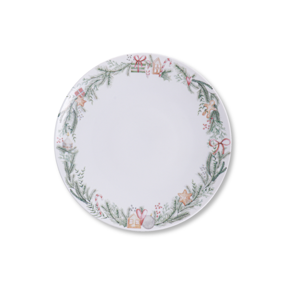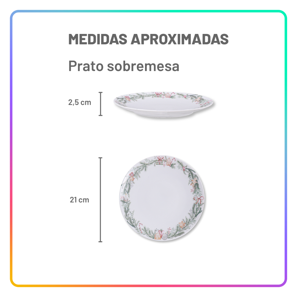 Jogo de Pratos de Natal Tramontina Noite Feliz Aparelho Jantar Raso Sobremesa em Porcelana Decorada