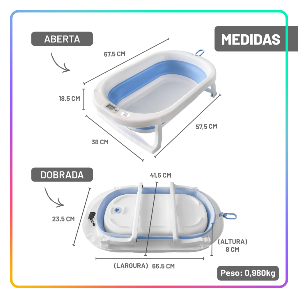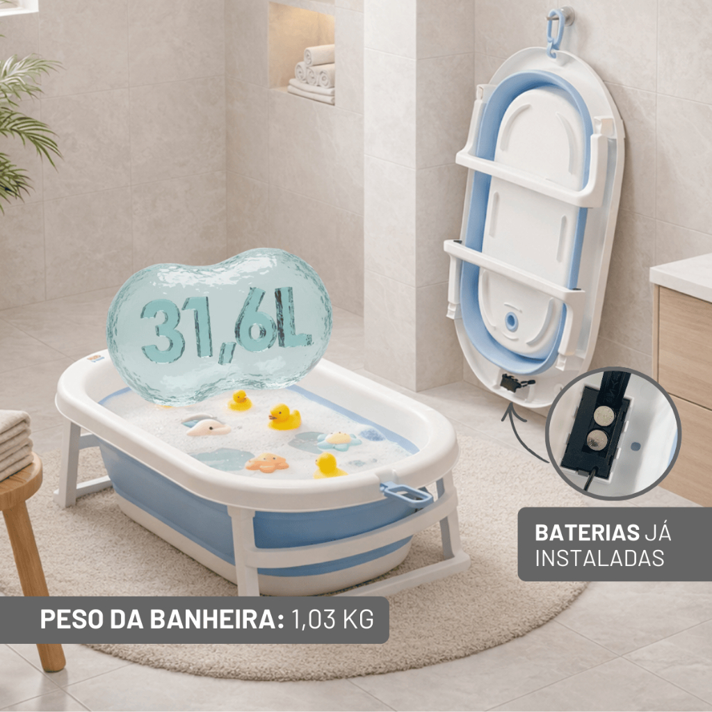 Banheira Bebê Dobrável Com Termômetro Digital Portátil e Compacta 30L + Rede de Proteção Toki Baby