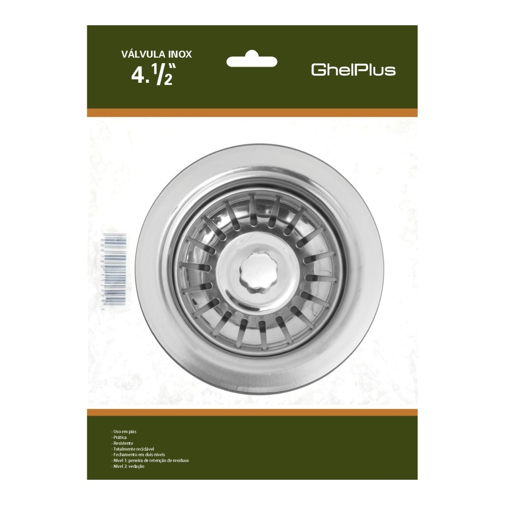 VALVULA P/ PIA DE COZINHA INOX - 4.1/2 - PINO CROMADO ABS VALVULA AMERICANA