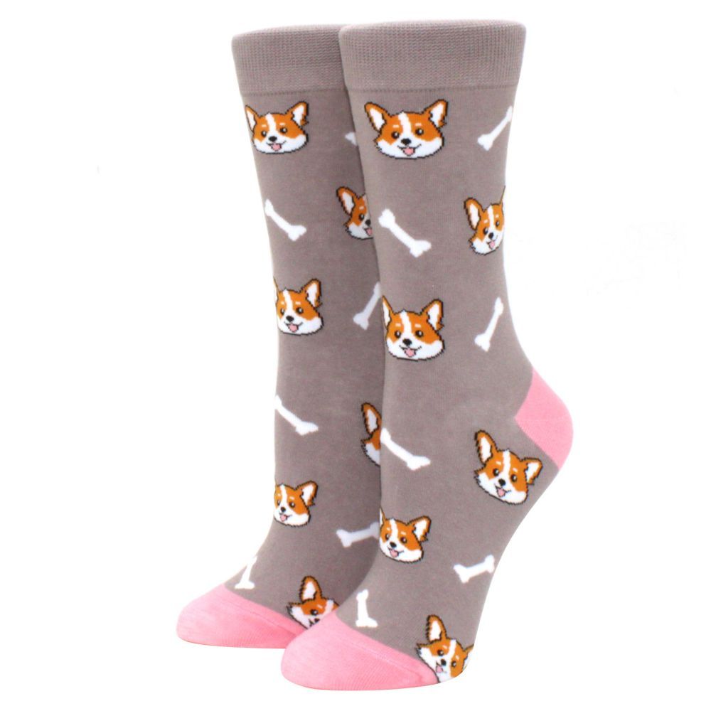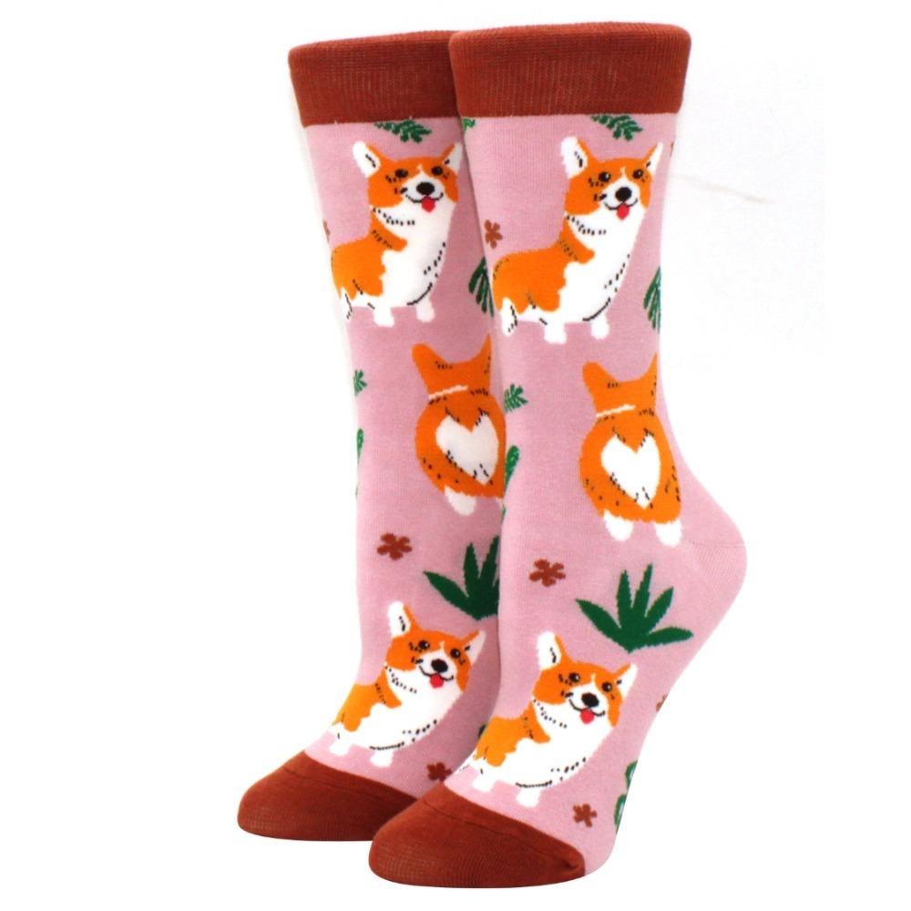 Moda E Divertida Mulheres Meias Tubo Médio Confortáveis De Corgi Pit Bull Impressas
