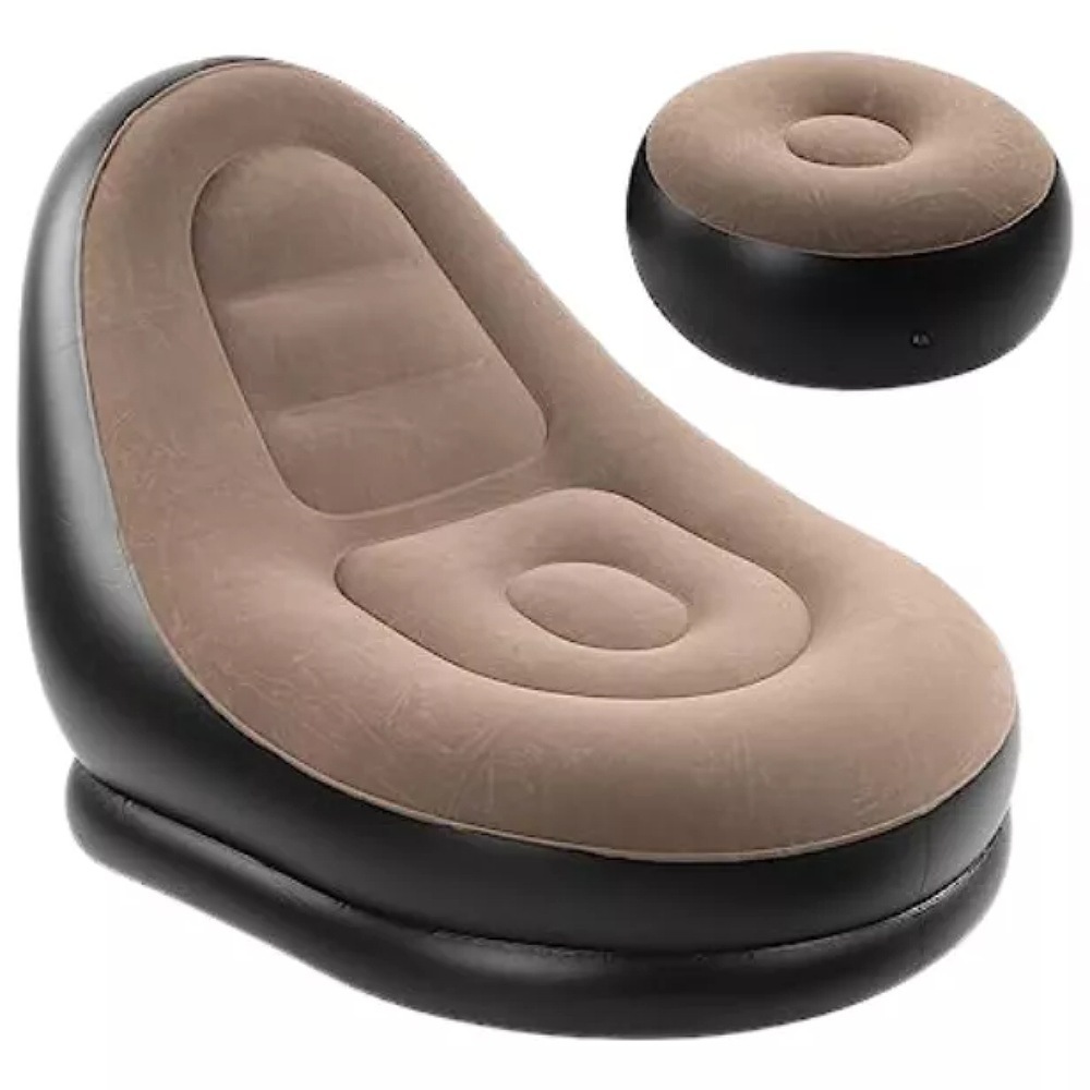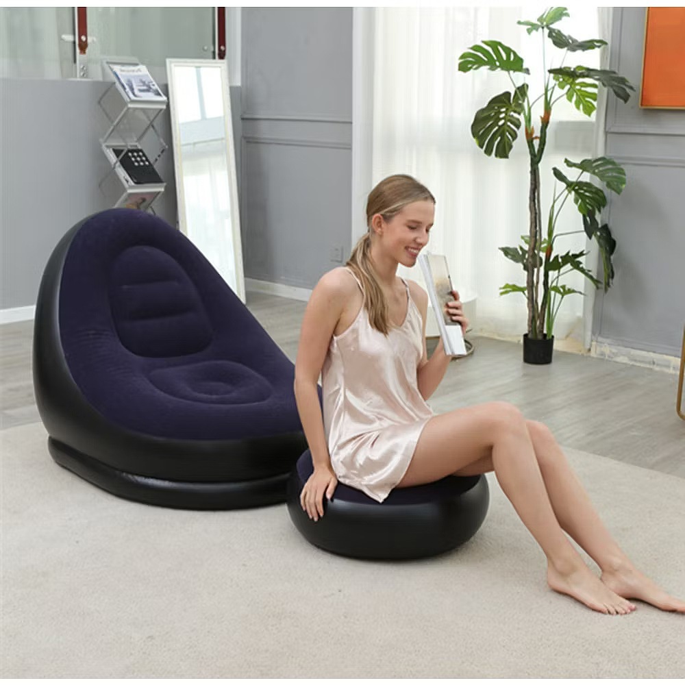 Sofa Poltrona Inflável Portátil Kit 3 em 1, vai poltrona com Puff e Bomba Inflador