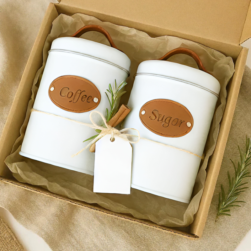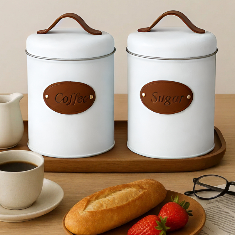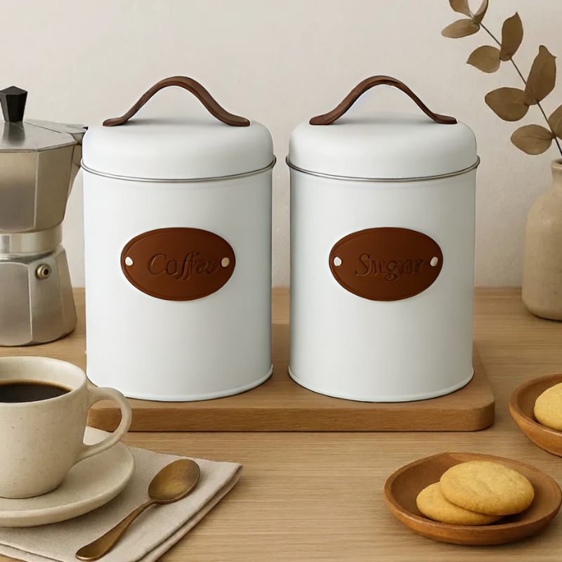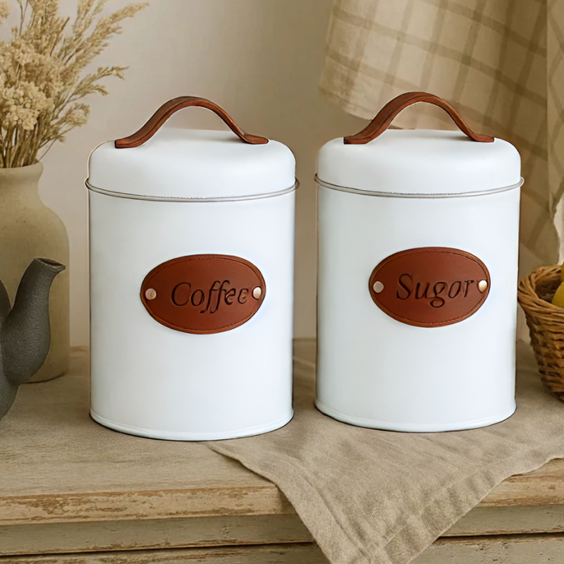 Latas Para Mantimentos Minimalista Coffee e Sugar - Couro