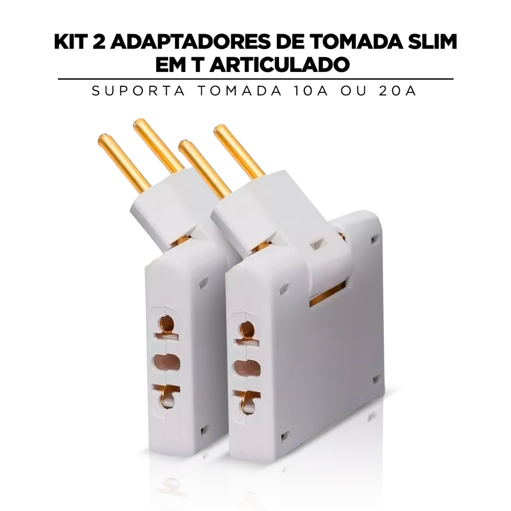 Kit 2 Adaptadores de Tomada slim em T Articulado possui 3 tomadas sendo tanto para 10A ou 20A