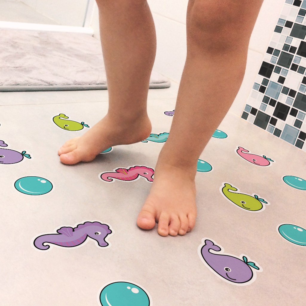 Adesivo Piso Banheiro Antiderrapante Infantil Estrela Conchas Fundo Mar