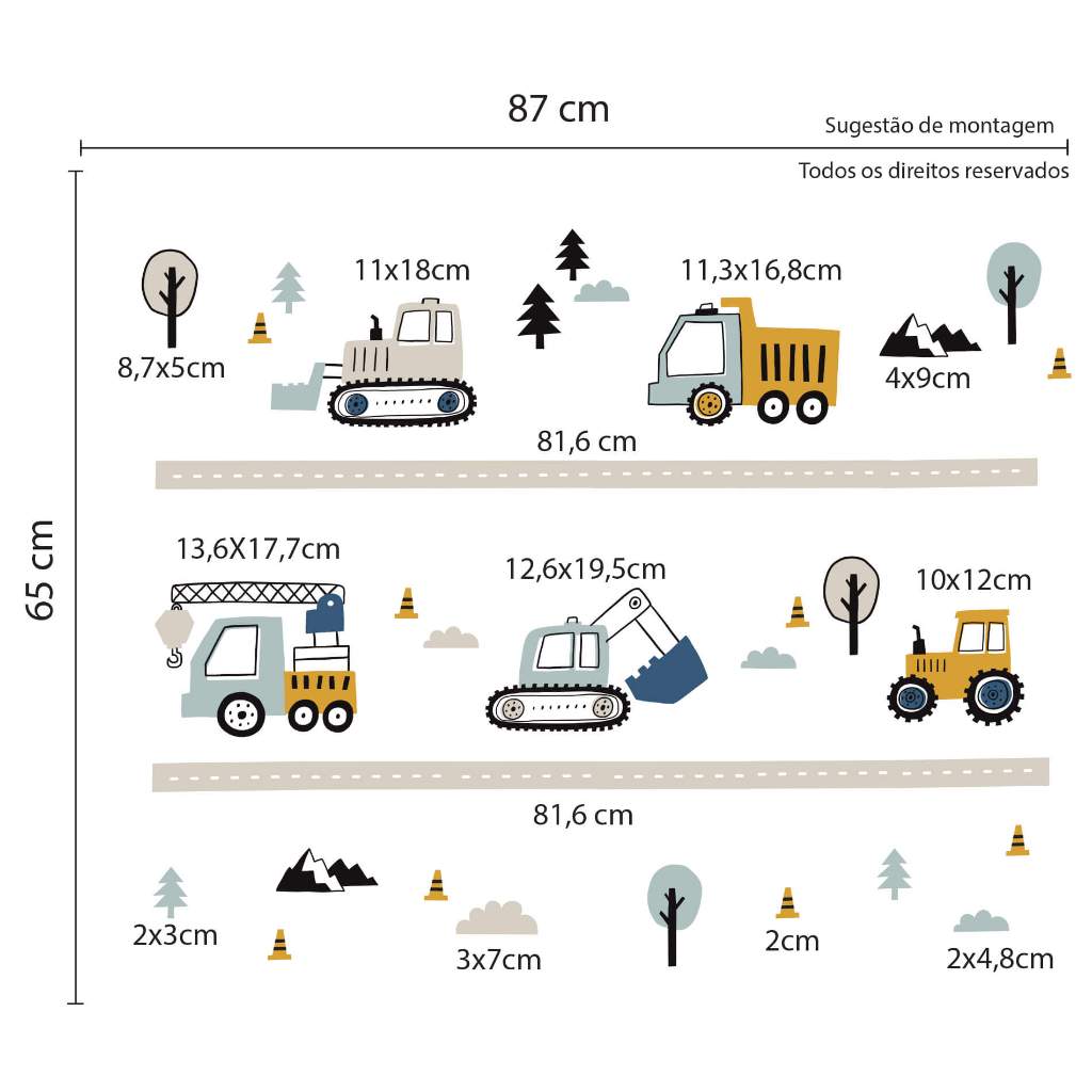 Adesivo Parede Carrinhos Menino Tratorzinho Infantil Decorativo Construção