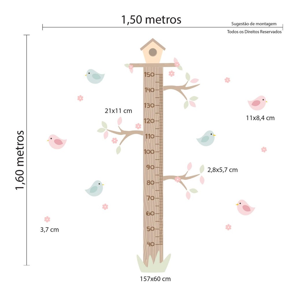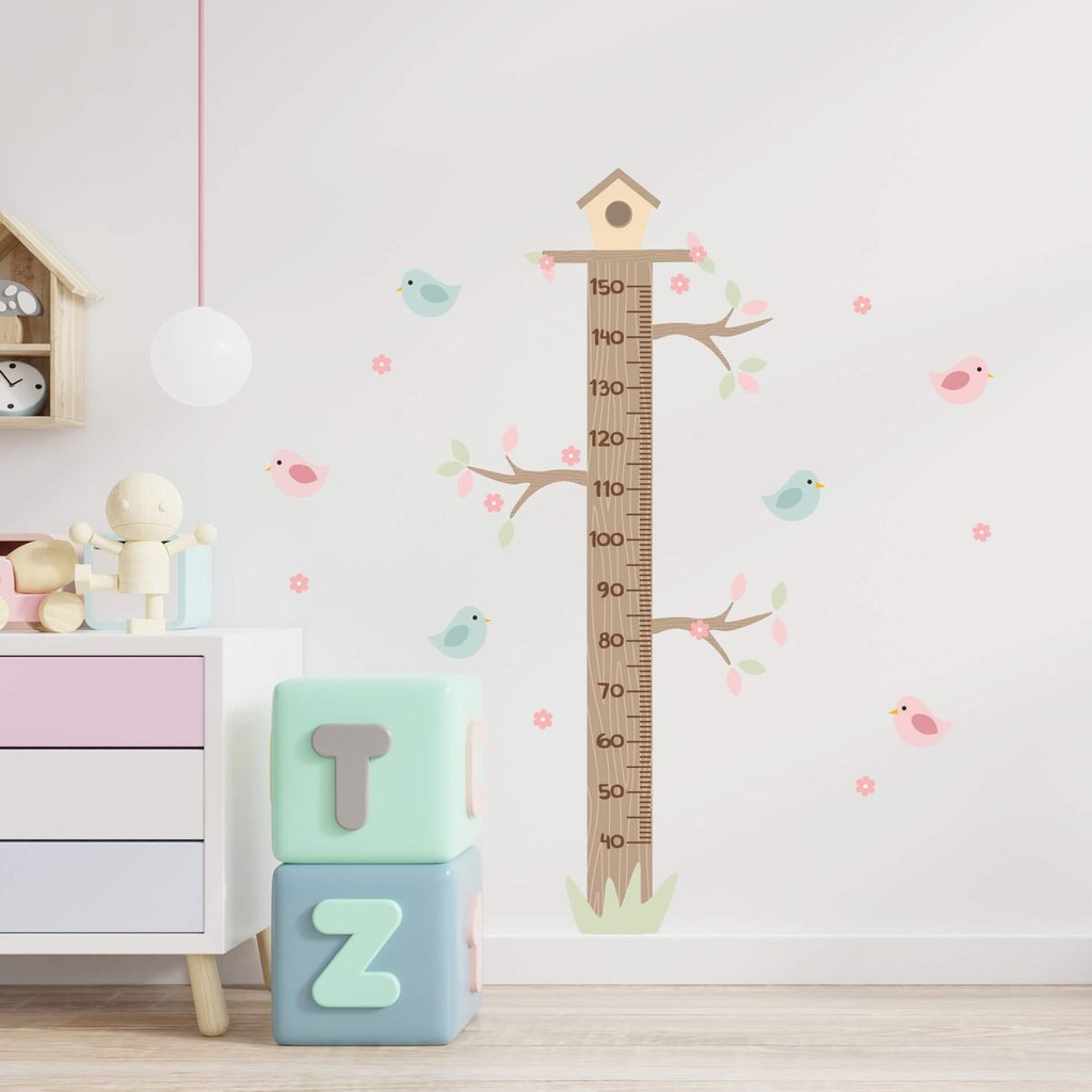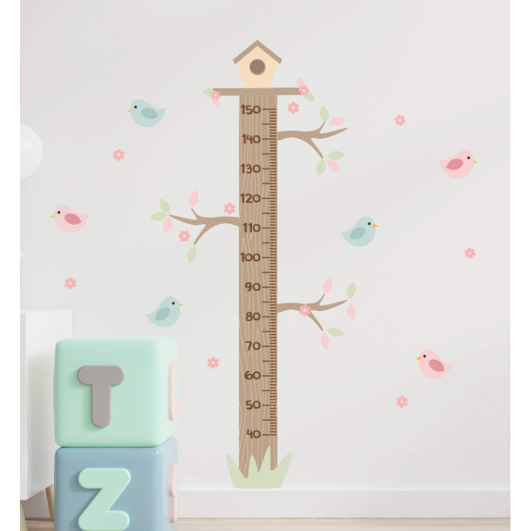 Adesivo de Parede Passarinhos Infantil Quarto Menina Régua