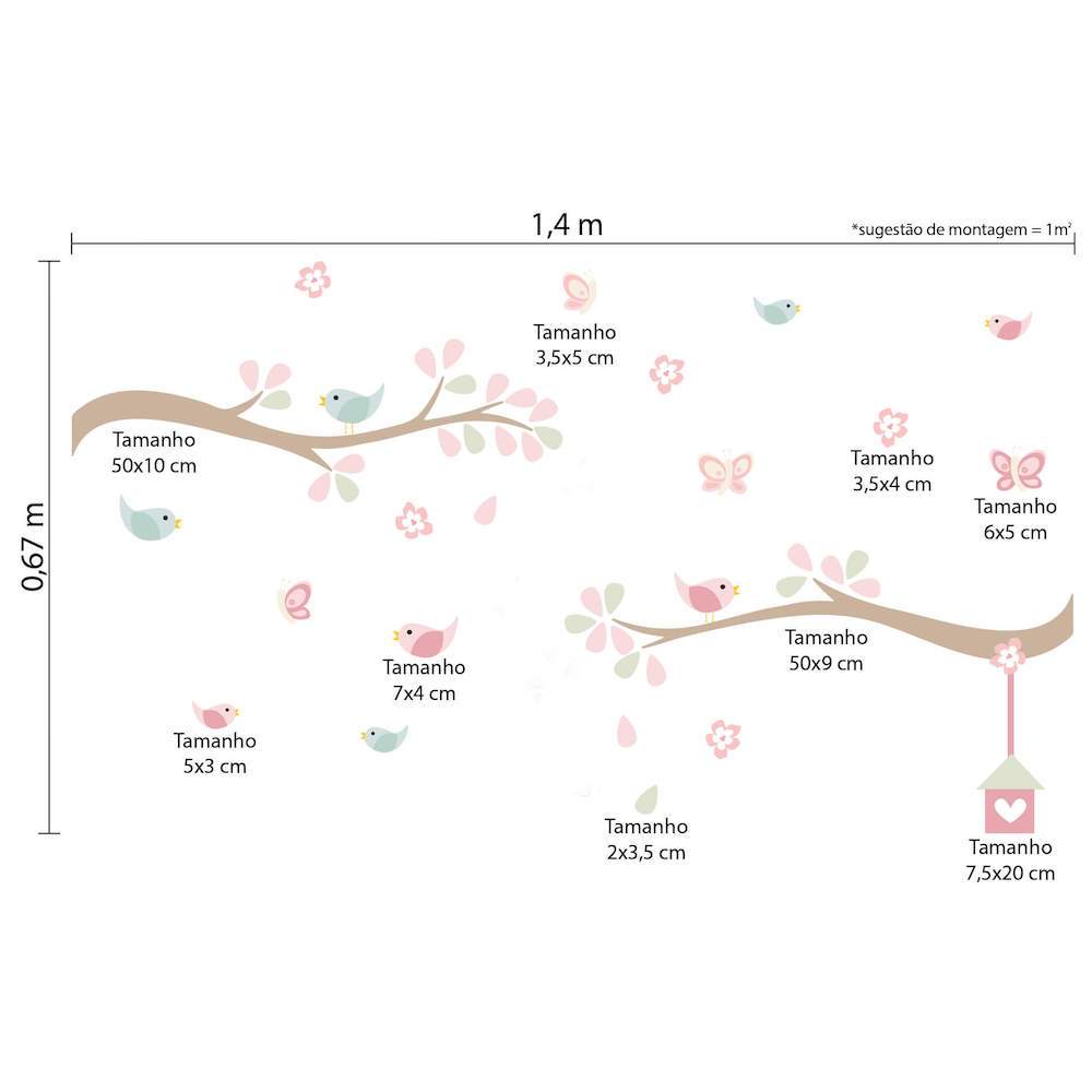 Adesivo de Parede Infantil Galhos e Pássaros com Camaleão
