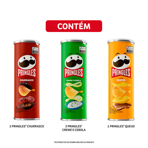 Combo Pringles Creme e Cebola 3 unid + Pringles Churrasco 2 unid + Pringles Queijo 1 unid