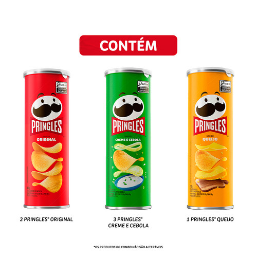 Combo Pringles Creme e Cebola 3 unid + Pringles Original 2 unid + Pringles Queijo 1 unid