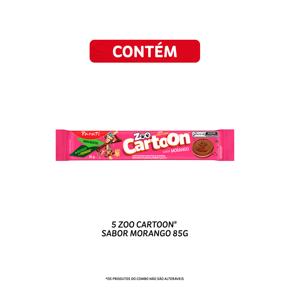 Combo Zoo Cartoon Sabor Morango 85g 5 unidades