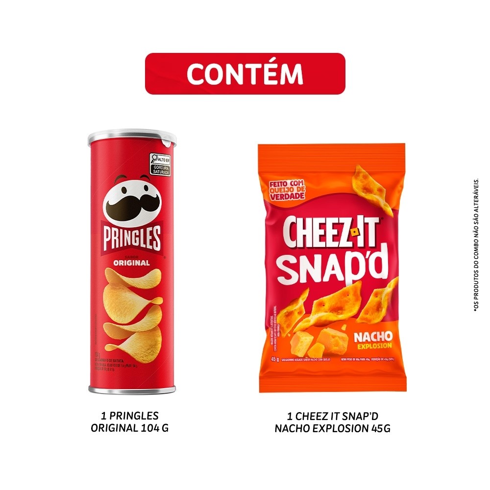 Combo Salgadinho Batata Frita Pringles® Original 104G E Cheez-It® Snap'D Nacho Explosion 45G