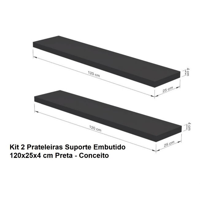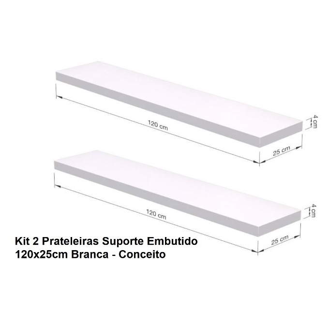 Prateleira Suporte Embutido / Invisível Conceito. Flutuante, grossa, 120cm largura Organize&Decore