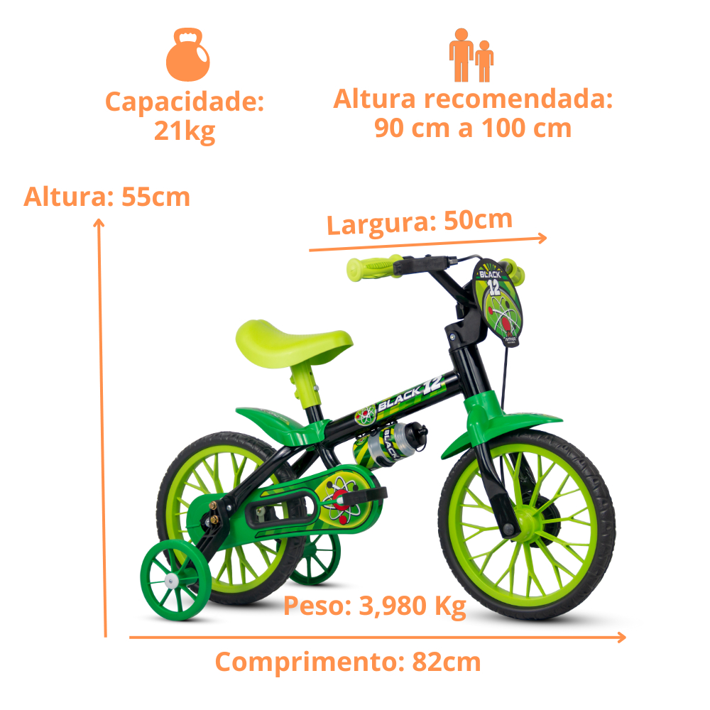 Bicicleta Infantil Criança Aro 12 Black 12 Nathor