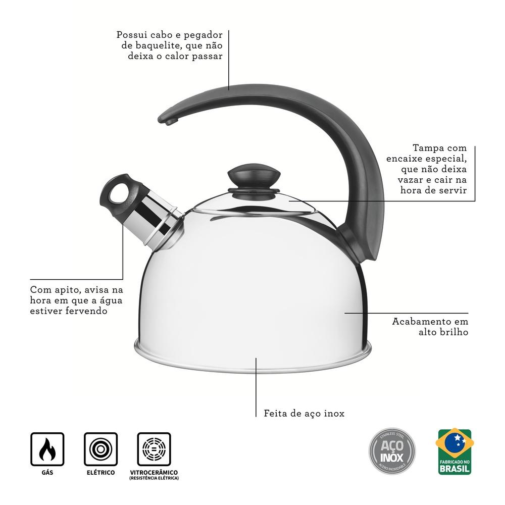 Chaleira Aço Inox 2 Litros Com Apito Tramontina