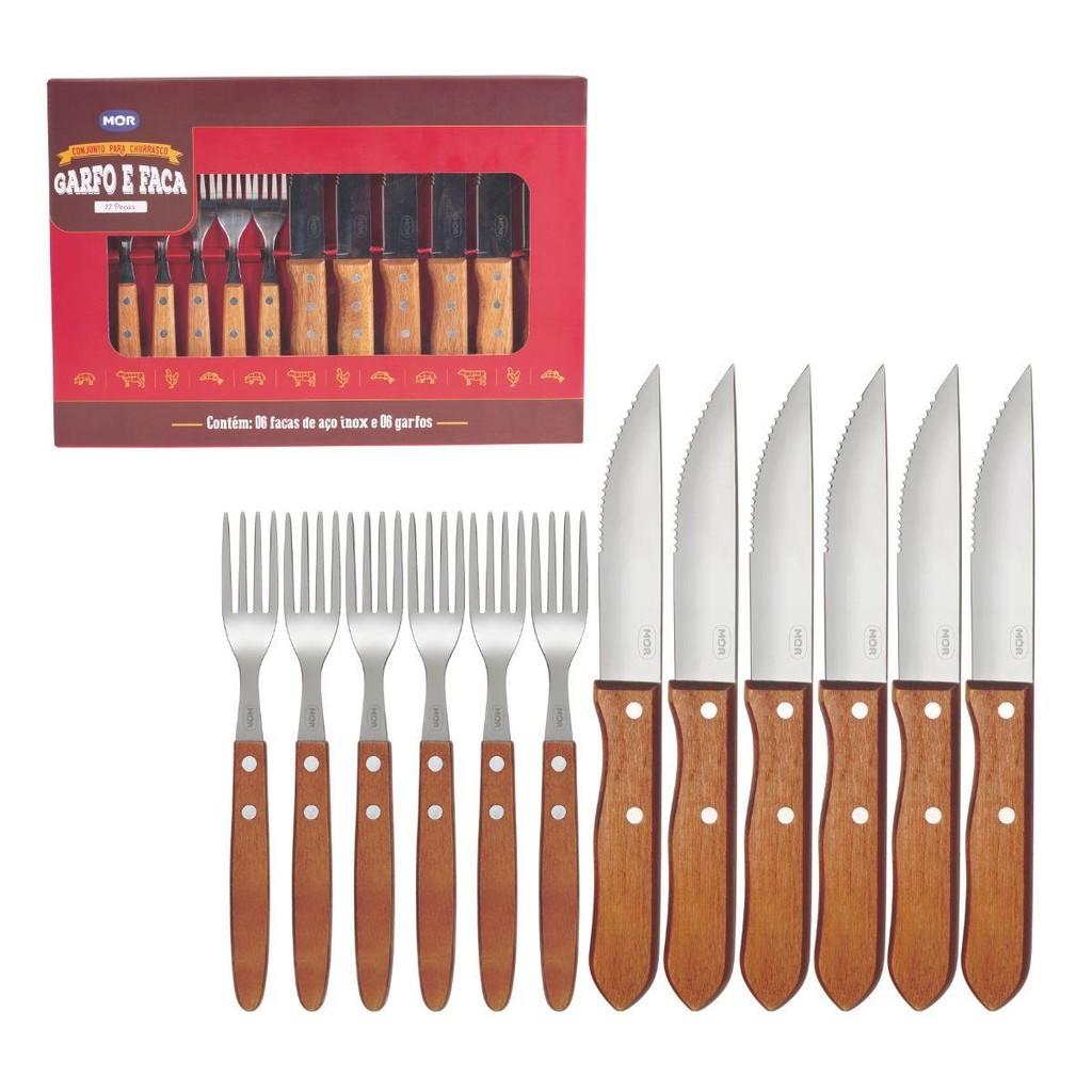 Jogo De Talheres Faqueiro Churrasco 12 Peças Mor
