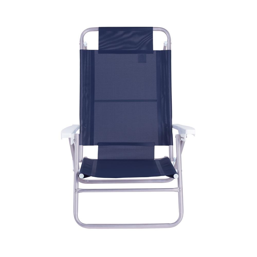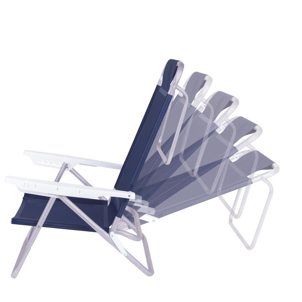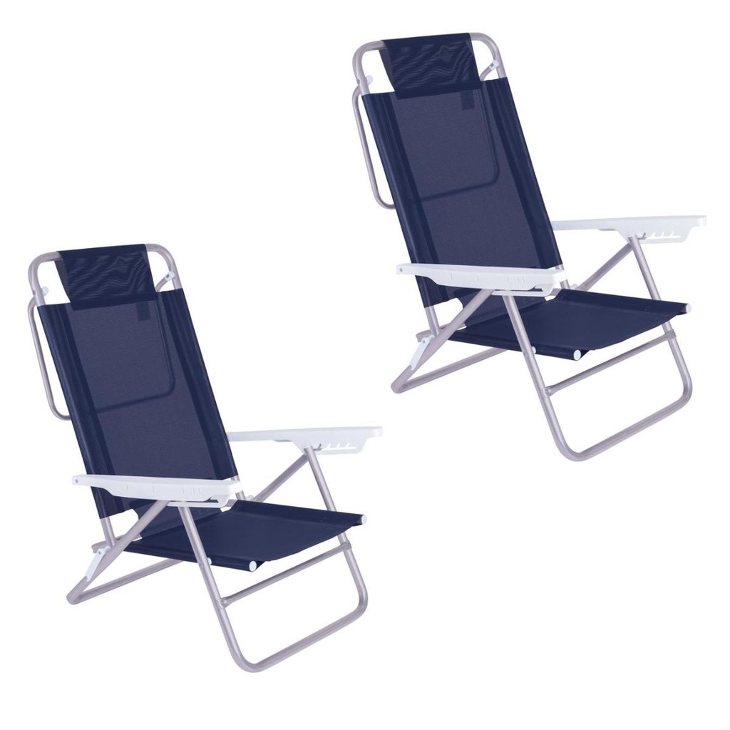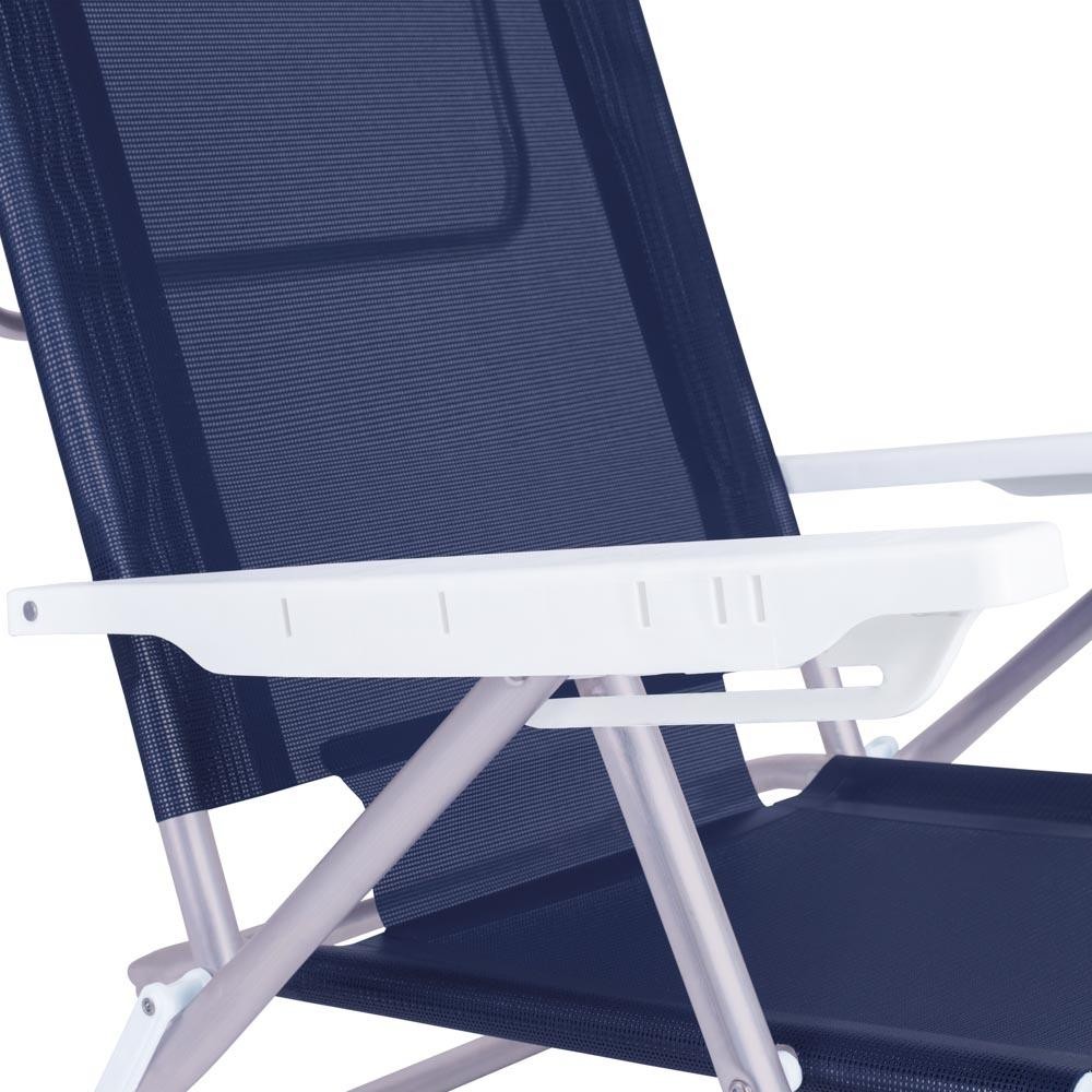 Kit 2 Cadeira Alumínio Reclinável 6 Posições Praia Mor Azul