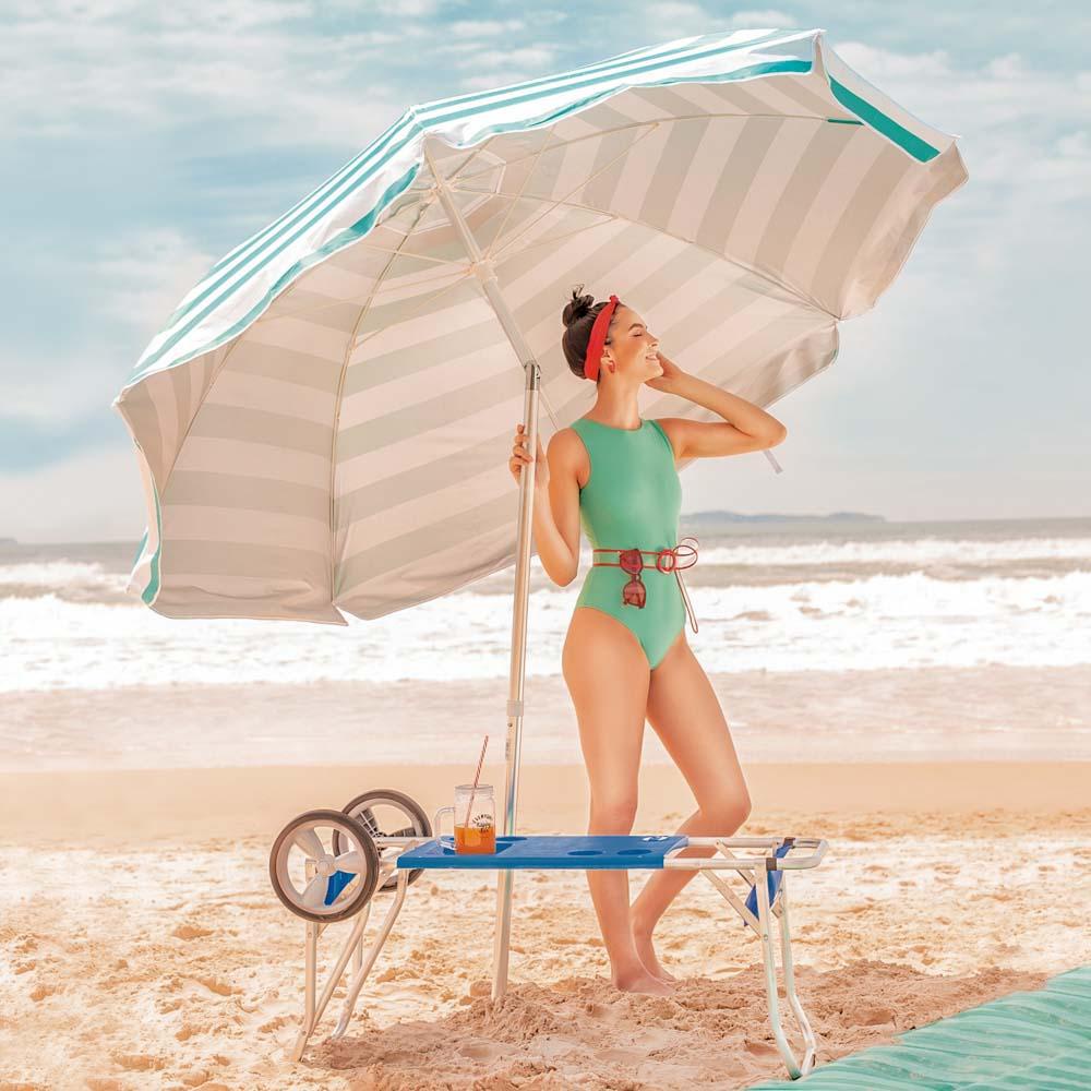 Carrinho De Praia Com Avanço Para Caixa Térmica Alumínio Mor Azul