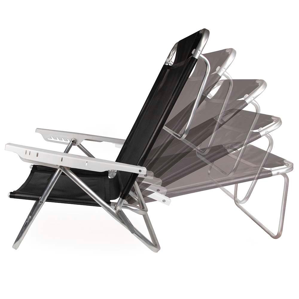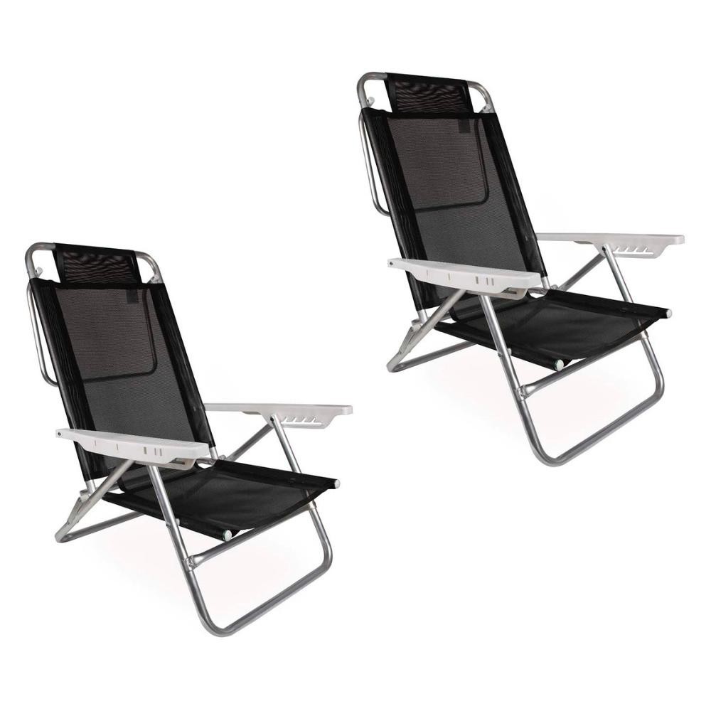 Kit 2 Cadeira Alumínio Reclinável 6 Posições Mor Preta