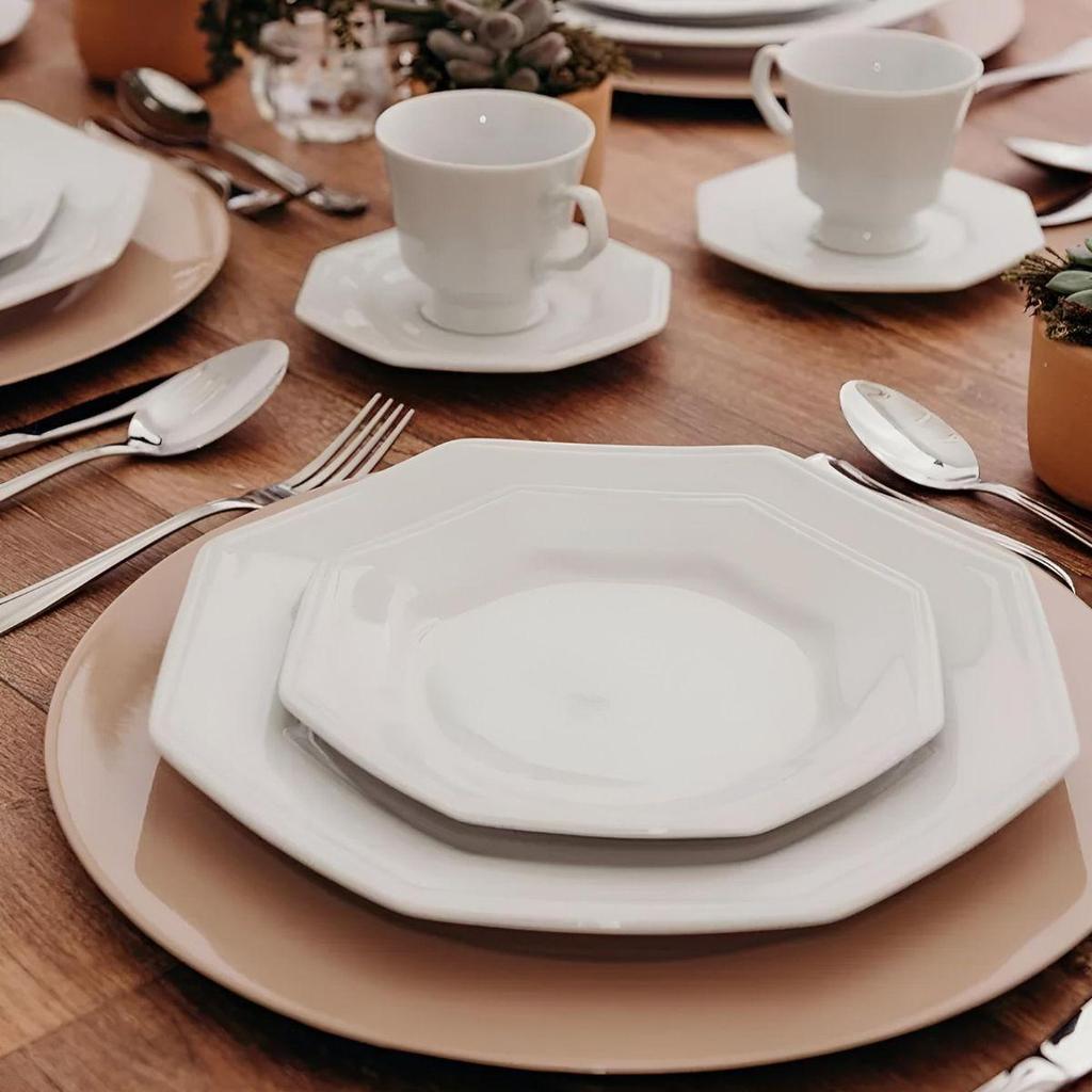 Jogo 2 Pratos de Sobremesa Prisma Brancos 20,5 cm Porcelana Schmidt