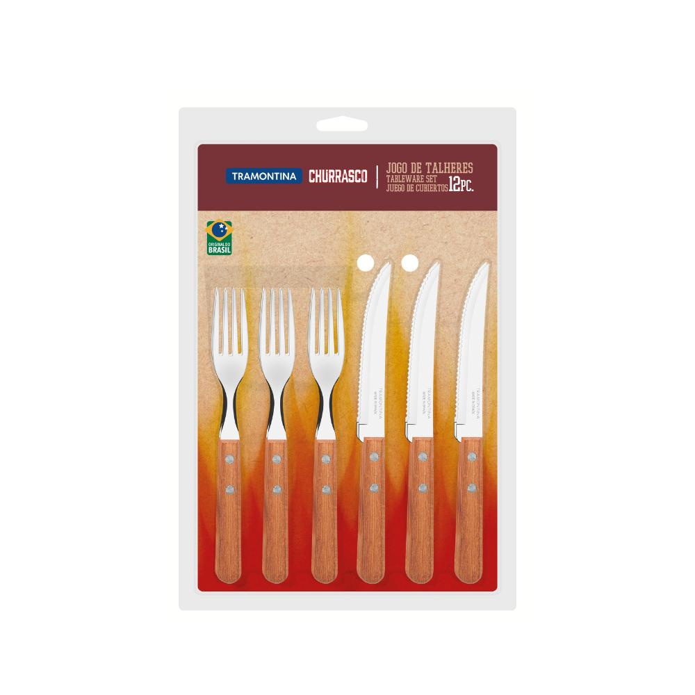 Faqueiro Tramontina Cabo De Madeira Inox 24 Peças Dynamic