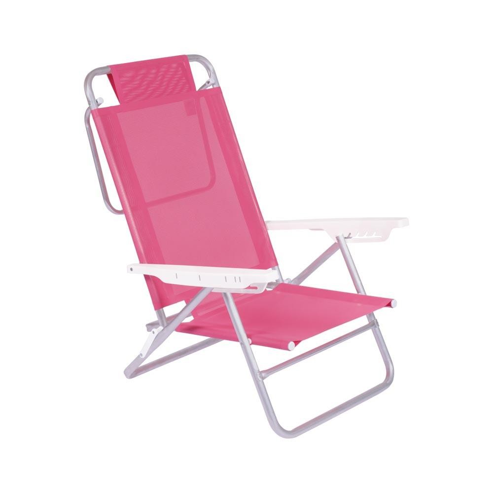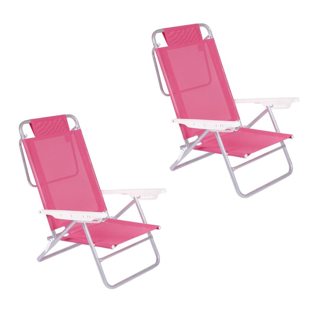 Kit 2 Cadeira Alumínio Reclinável Summer 6 Posições Rosa Mor