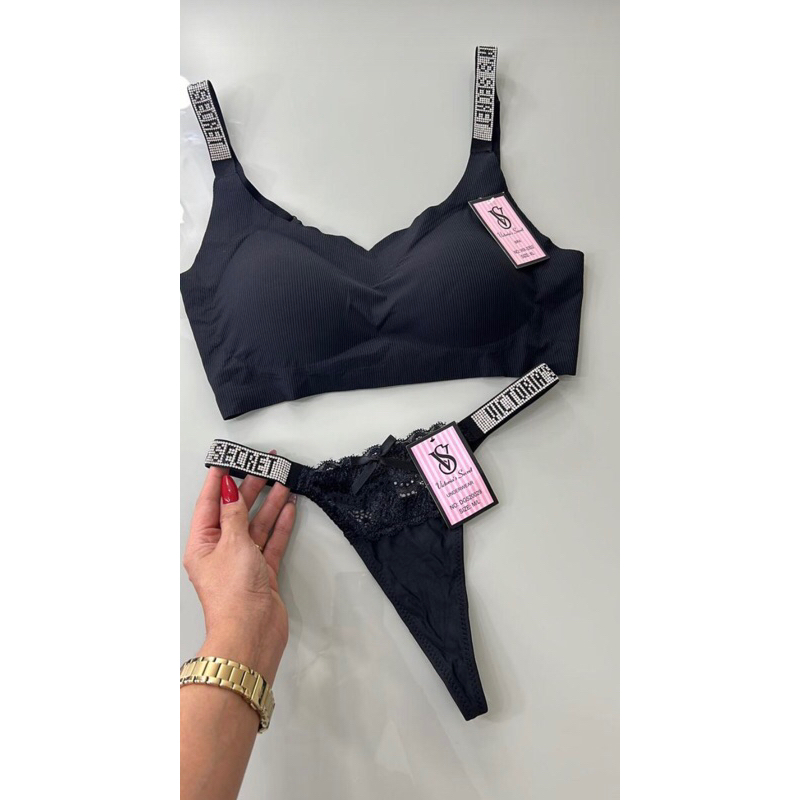 Conjunto pedraria com nome Victoria’s Secret alça regulável com fecho não marca