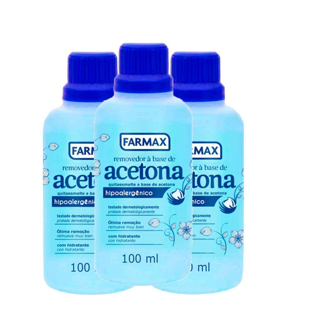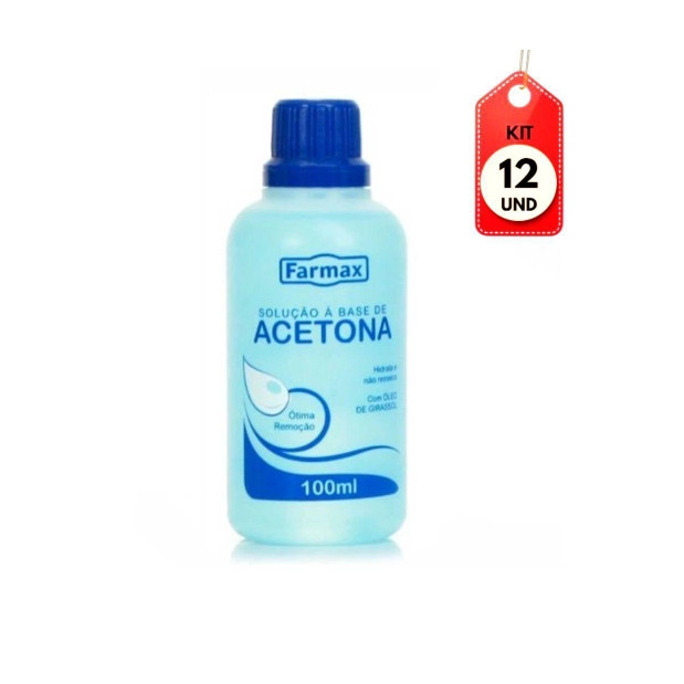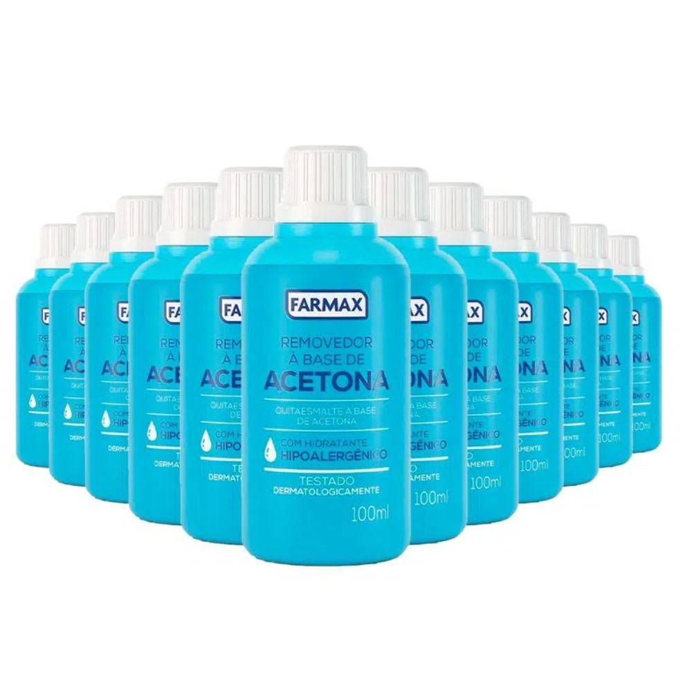 KIT 12 ACETONA FARMAX 100ML REMOVE ESMALTE HIPOALERGENICO