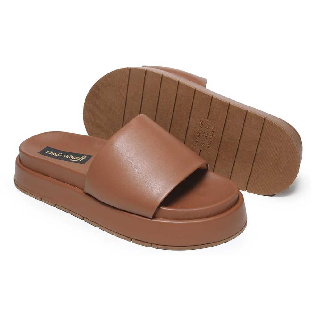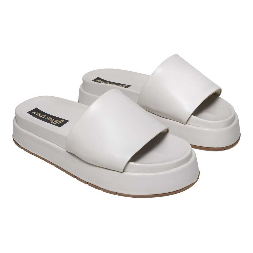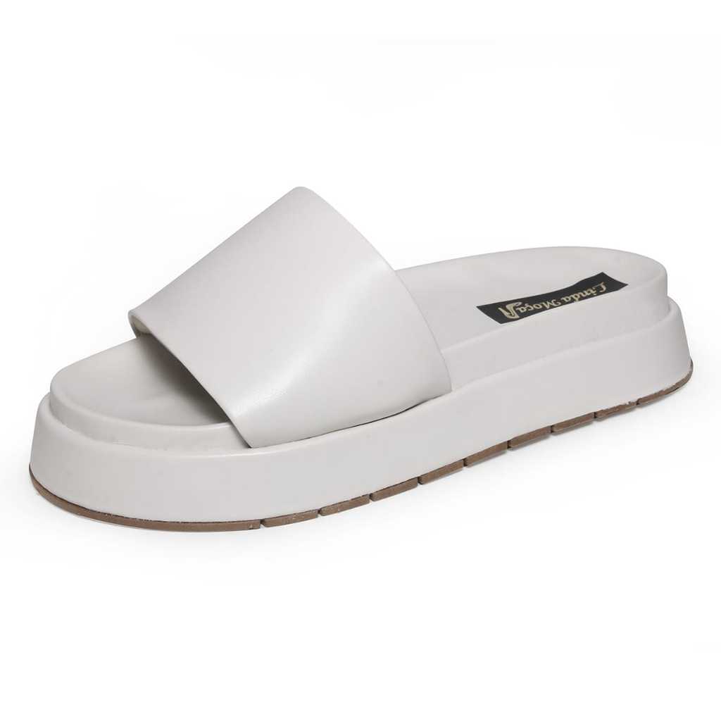 Sandalia Feminina Papete Slide Linda Moça Plataforma Off-Whitte