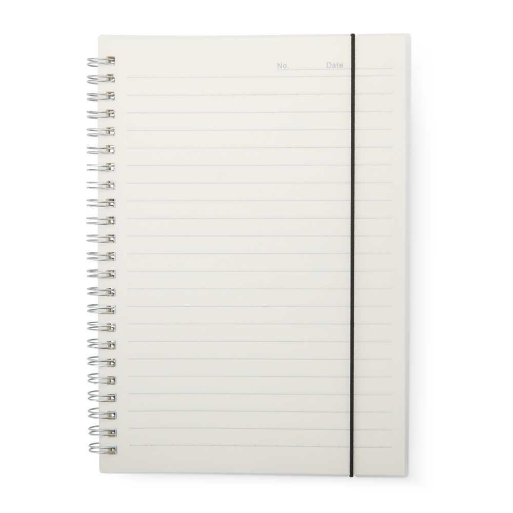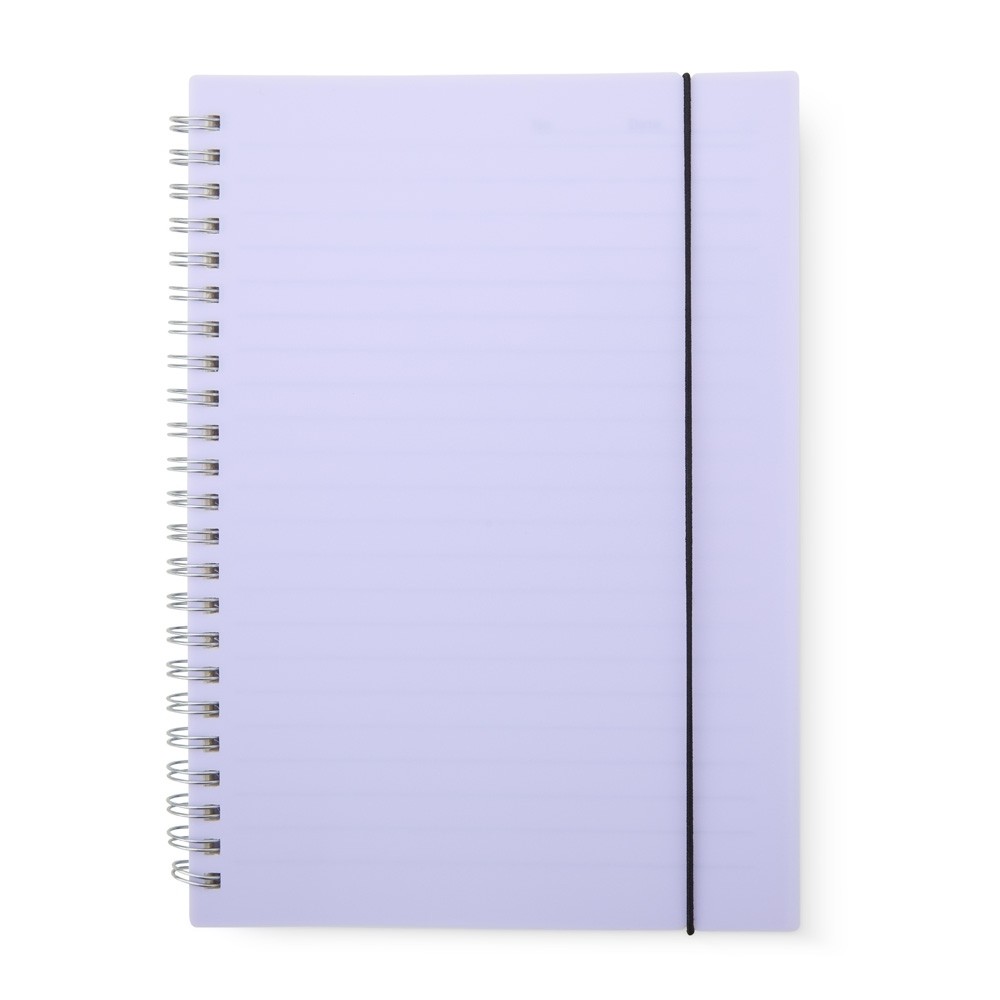 Caderno A5 com capa plástica e elástico para lacre com pauta