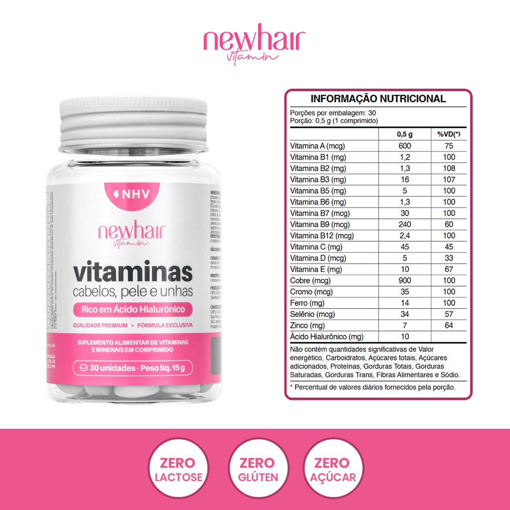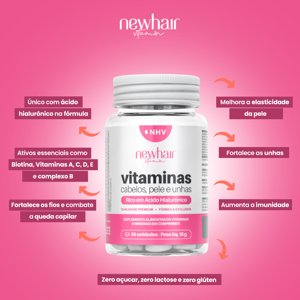 🎁 Pague 1 Leve 2 New Hair Ácido Hialurônico – Vitamina Capilar em Comprimidos