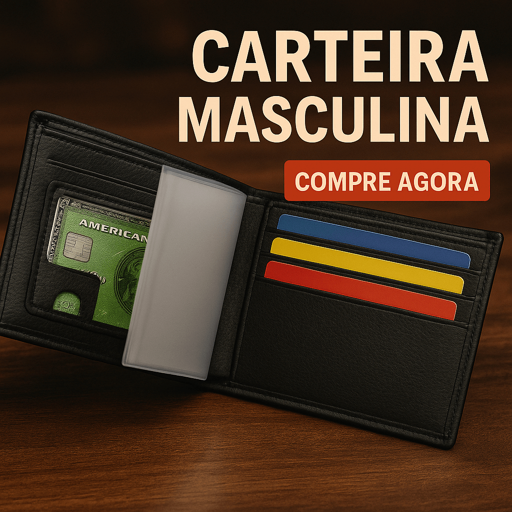 Carteira Masculina Slim Couro PU Premium Preto e Marrom Moderna, Resistente e Elegante