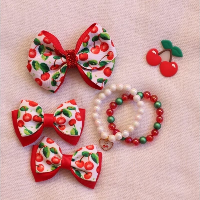 Laço de cabelo Cereja + Pulseira para meninas