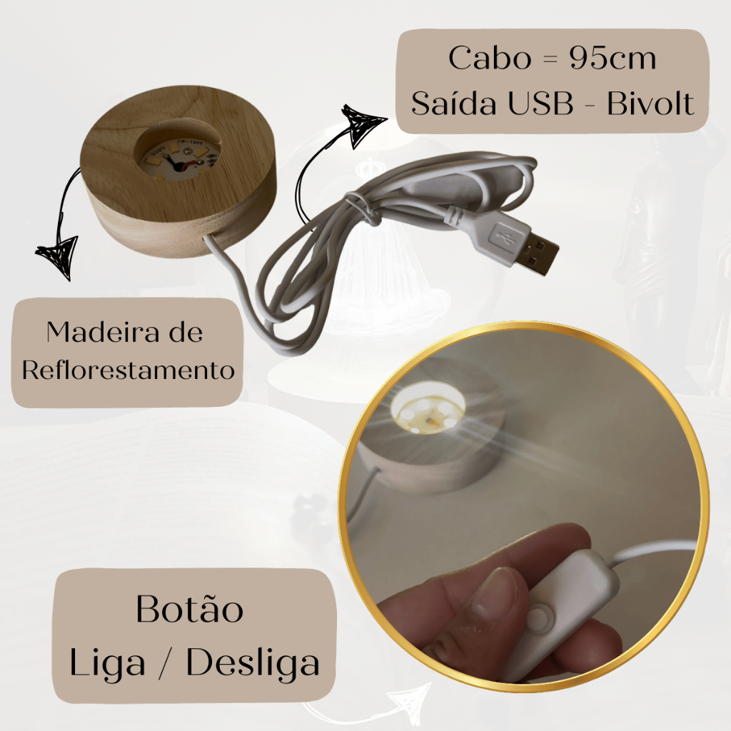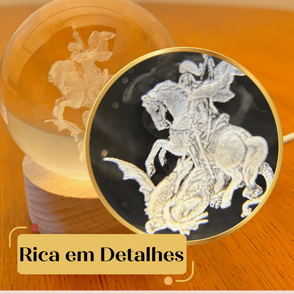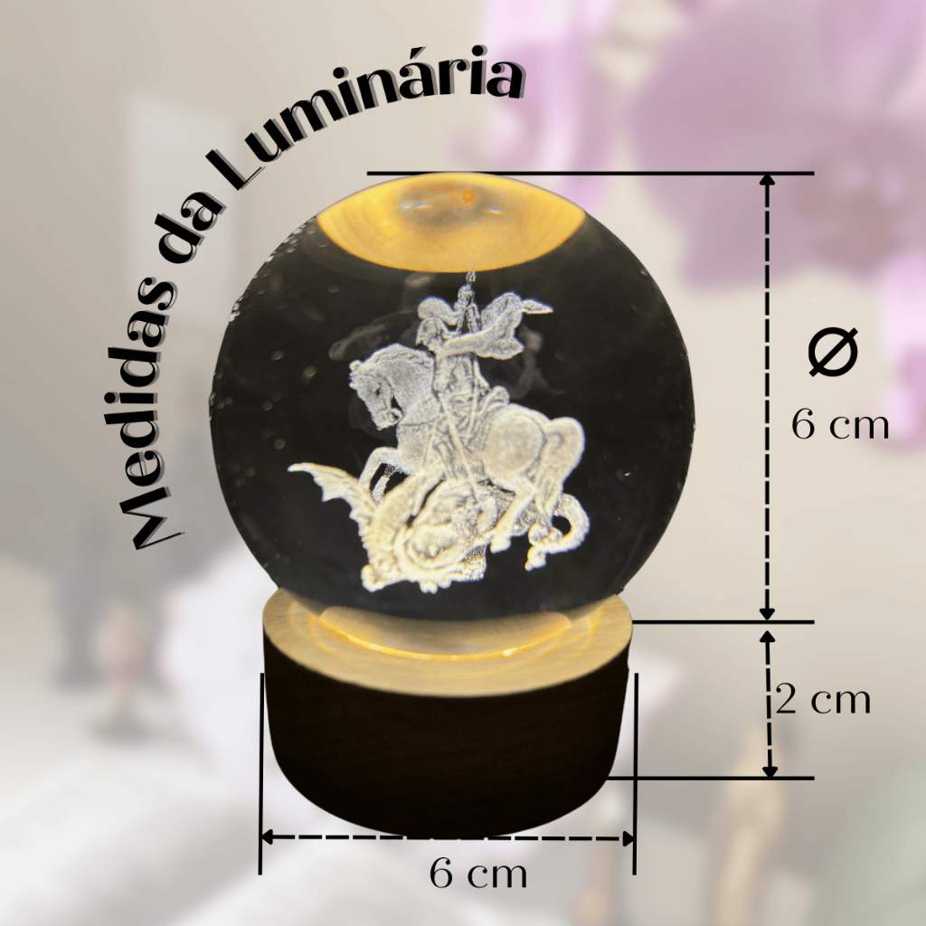 Luminária decorativa Mesa Bola de Vidro São Jorge o Cavaleiro derrotando o dragão luz branco quente
