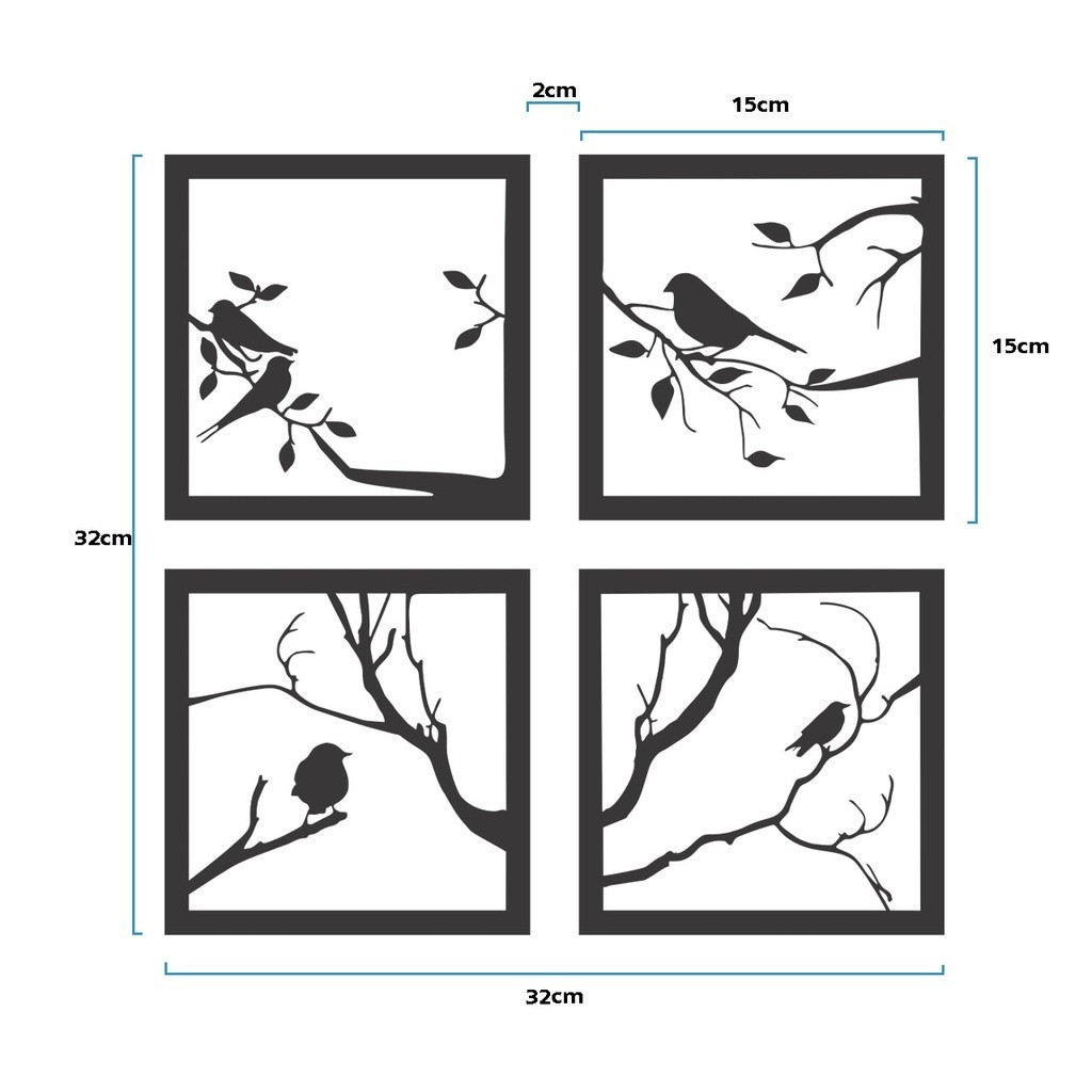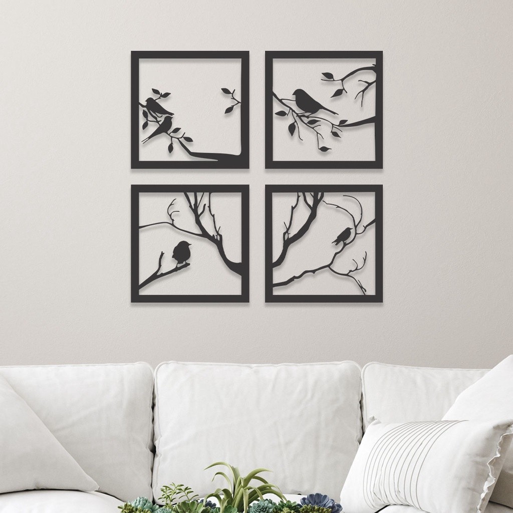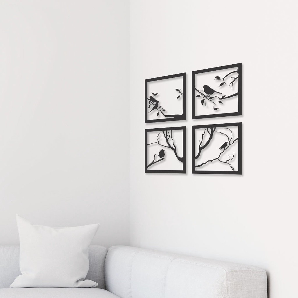Quadro Decorativo Kit Pássaros MDF Preto Fosco