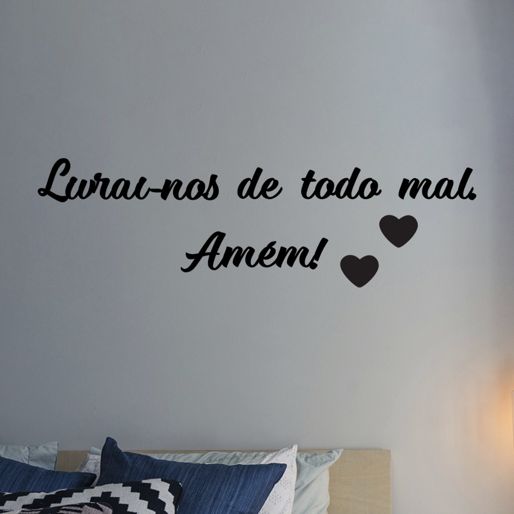 Quadro Decorativo Frase Livrai-nos de Todo Mal Amém MDF Preto Fosco