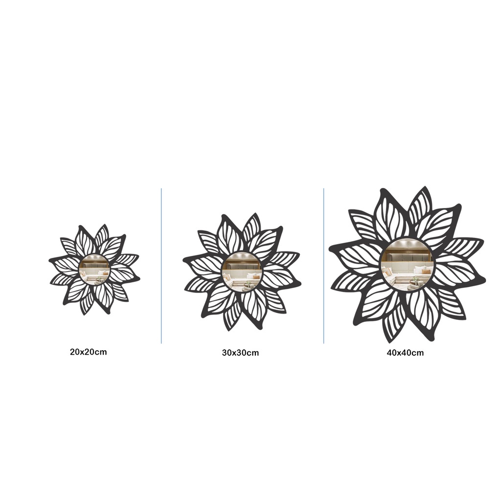 Espelho Decorativo Mandala Folhas MDF Preto Fosco em 3 Tamanhos