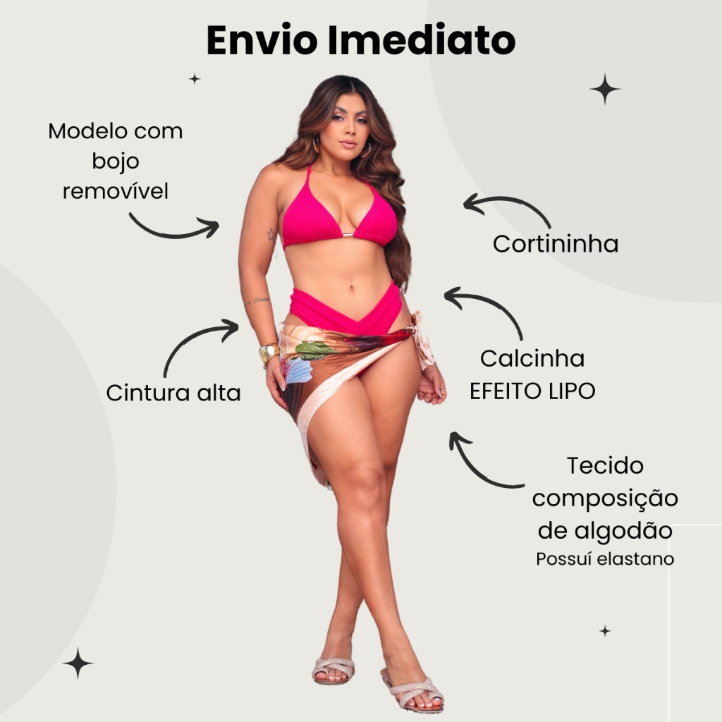 Biquíni Cortininha Efeito Lipo Cintura Alta ENVIO IMEDIATO