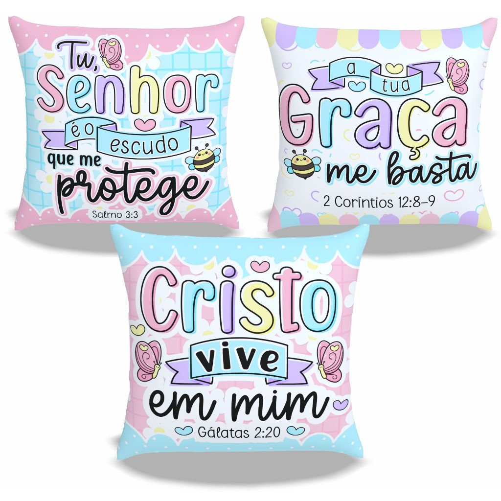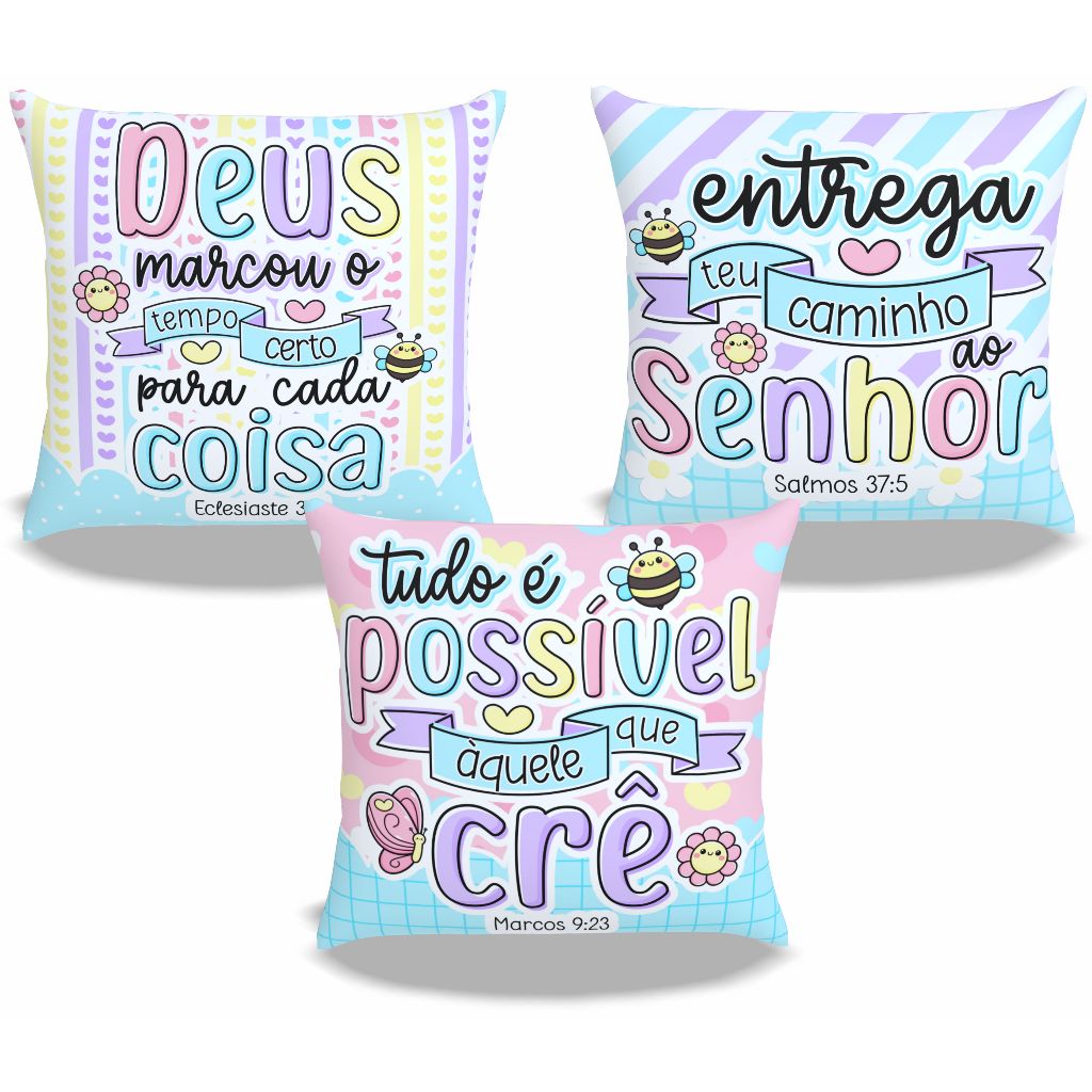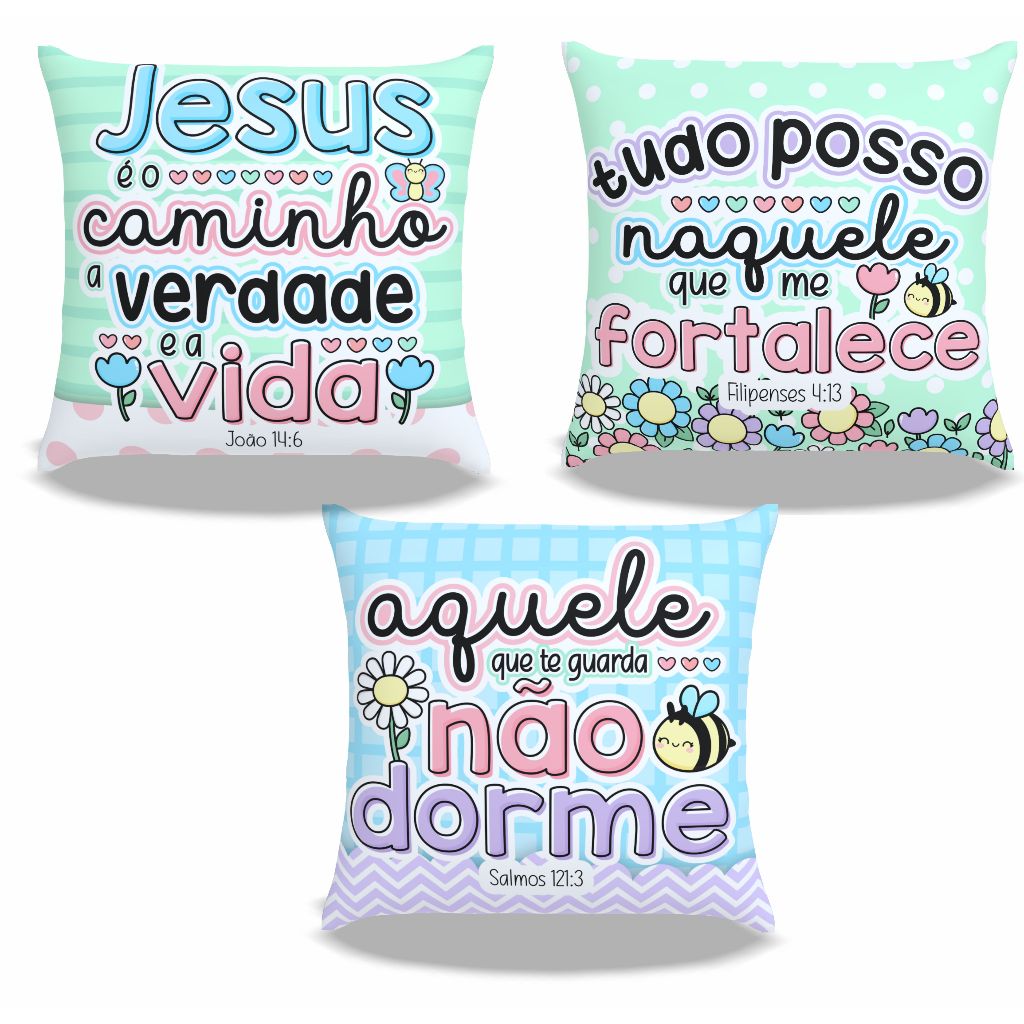 Kit 3 Capas Almofada 45x45_Versículo Bíblico