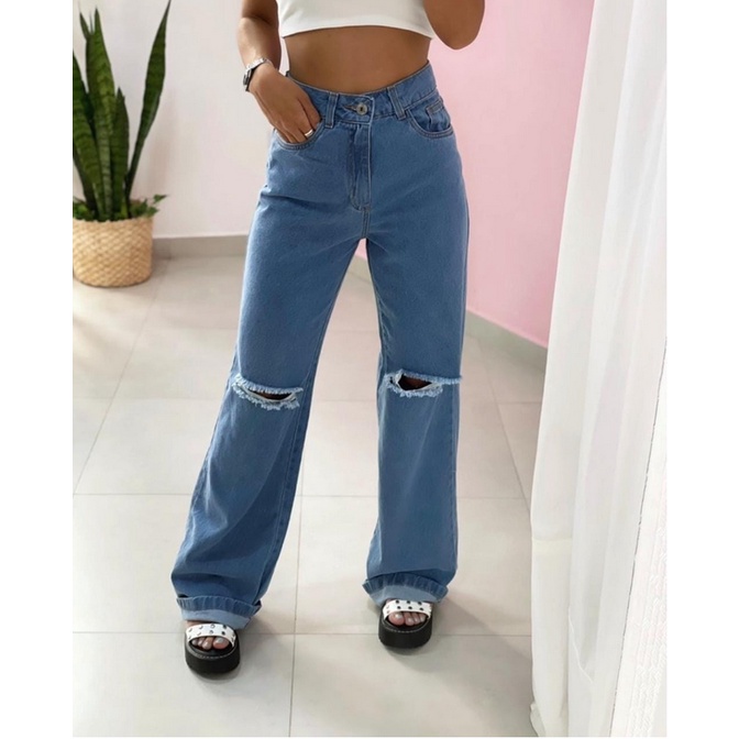 Calça Wide Leg Jeans Pantalona Black Color Tendencia Moda Gringa Estilosa