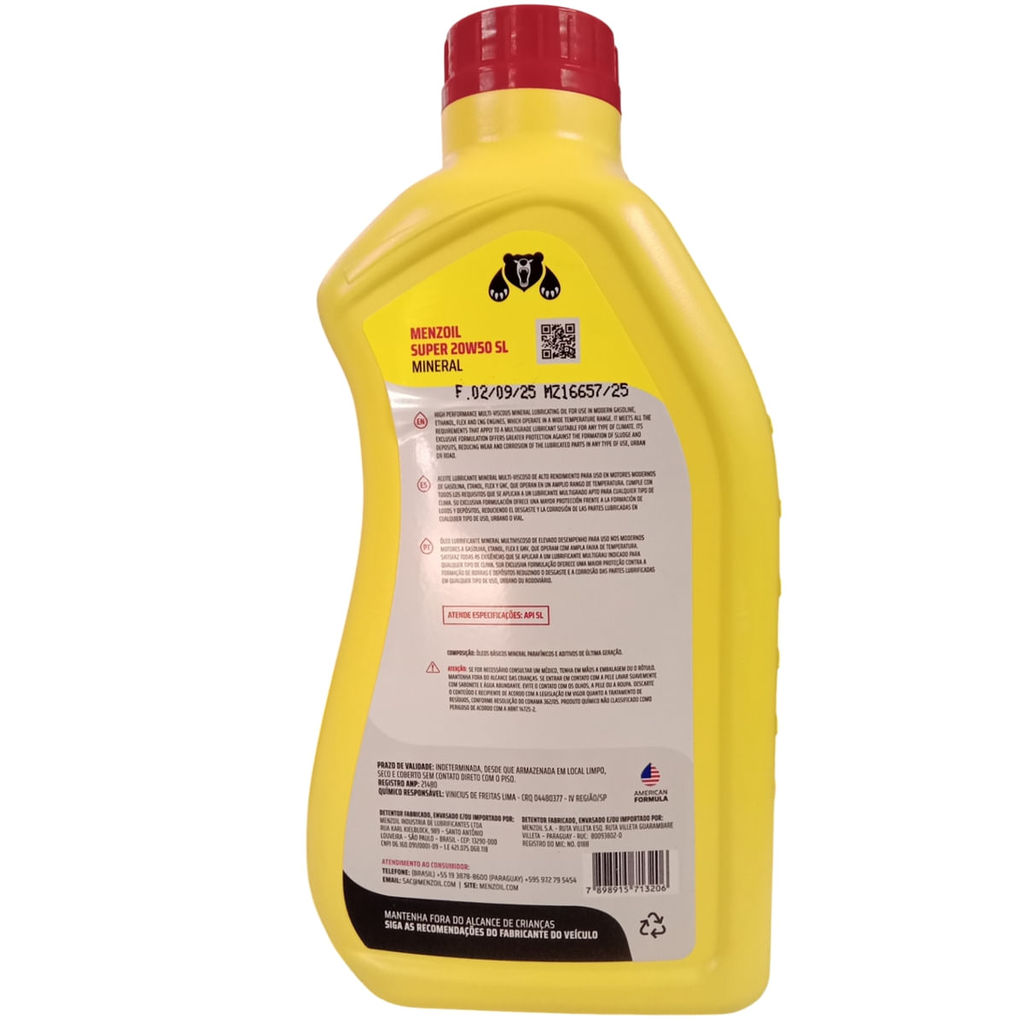 Óleo Mineral para Motor Super 20W50 1L - Menzoil