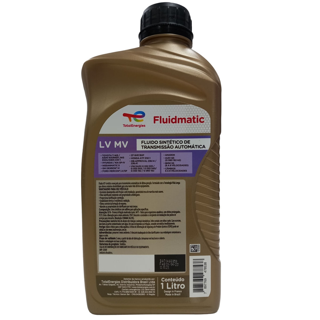 Óleo para Transmissão Automática Total Fluidmatic LV MV Sintético Dexron 6 - 1L